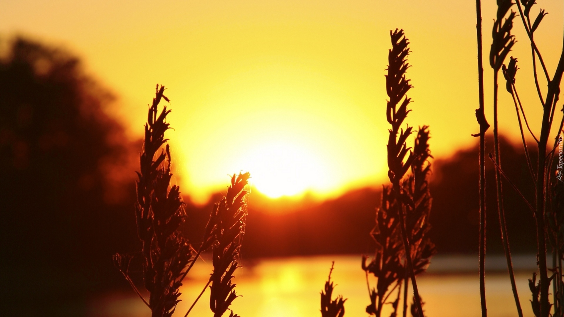 Edytor tapety: Zachód, Słońca, Jezioro, Trawa