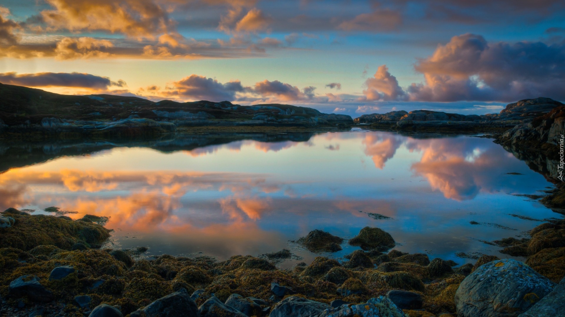 Edytor tapety: Jezioro, Kamienie, Chmury, Norwegia