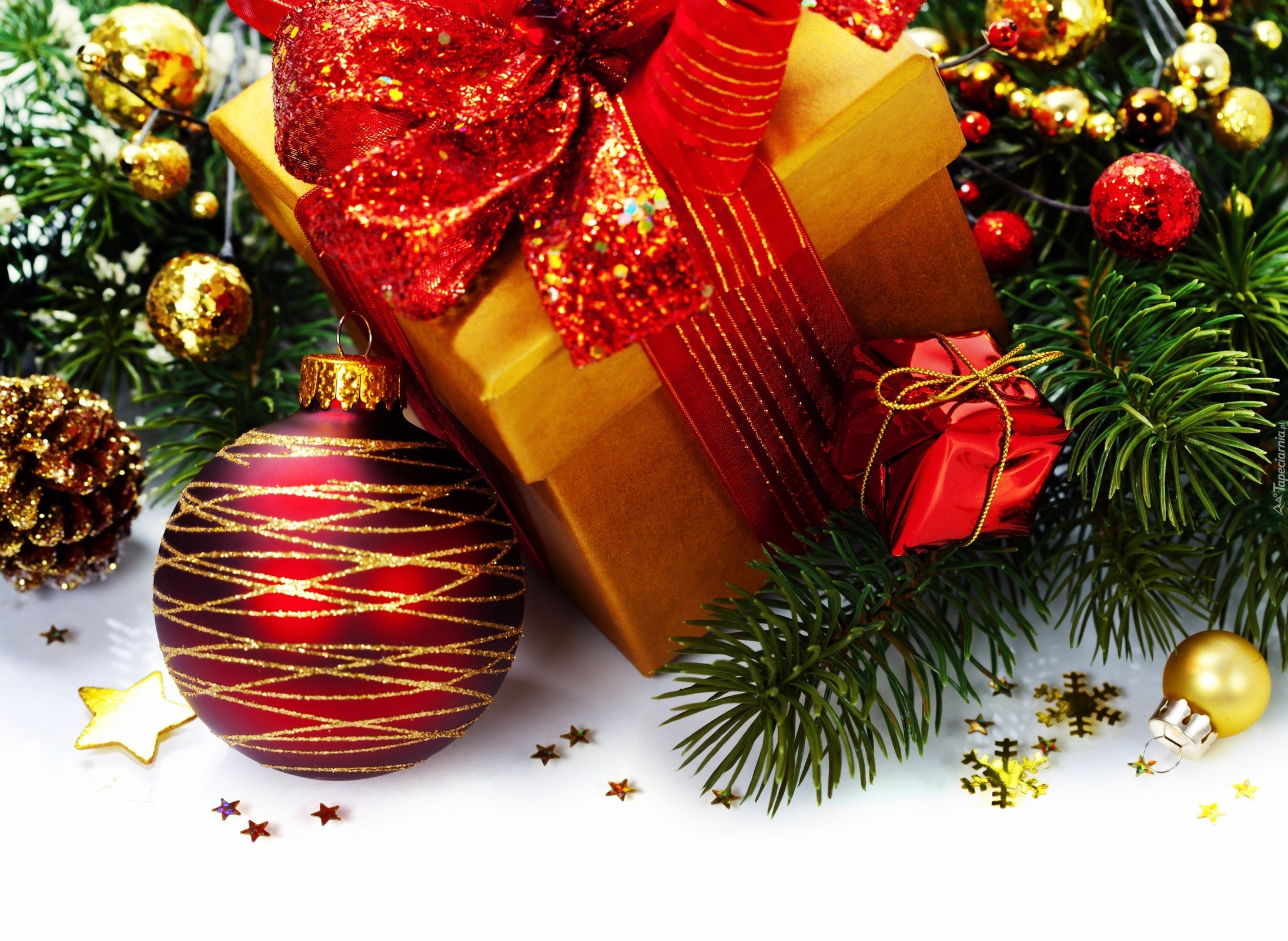 Edytor tapety: Prezent, Bombki, Boże Narodzenie