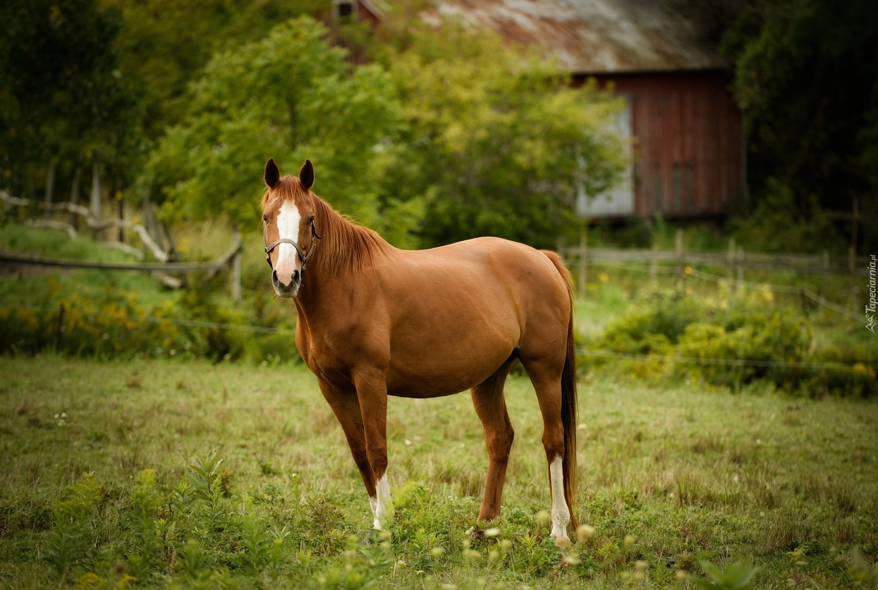Edytor tapety: Koń, Trawa, Drzewa, Dom