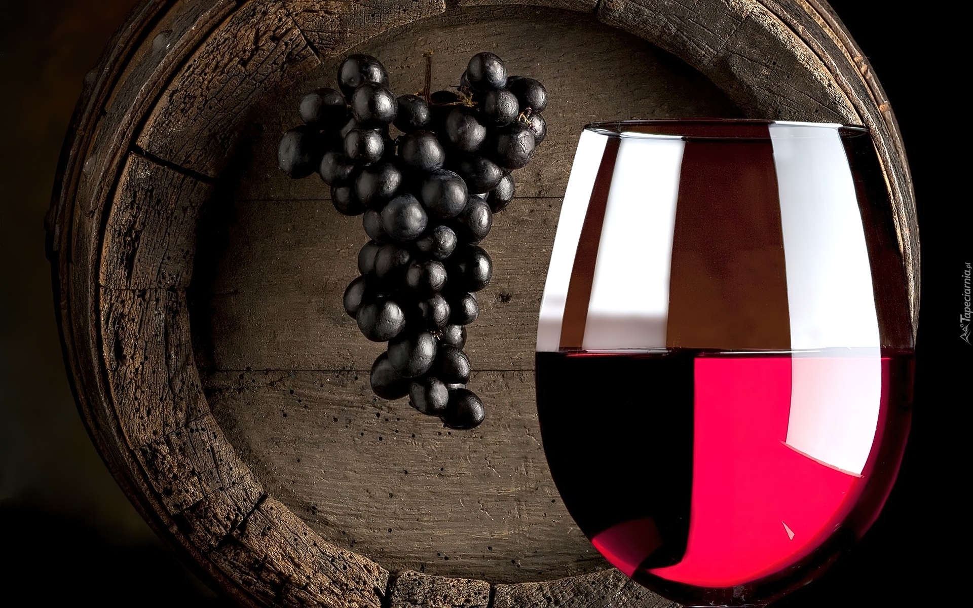 Edytor tapety: Beczka, Kieliszek, Wino, Winogrona