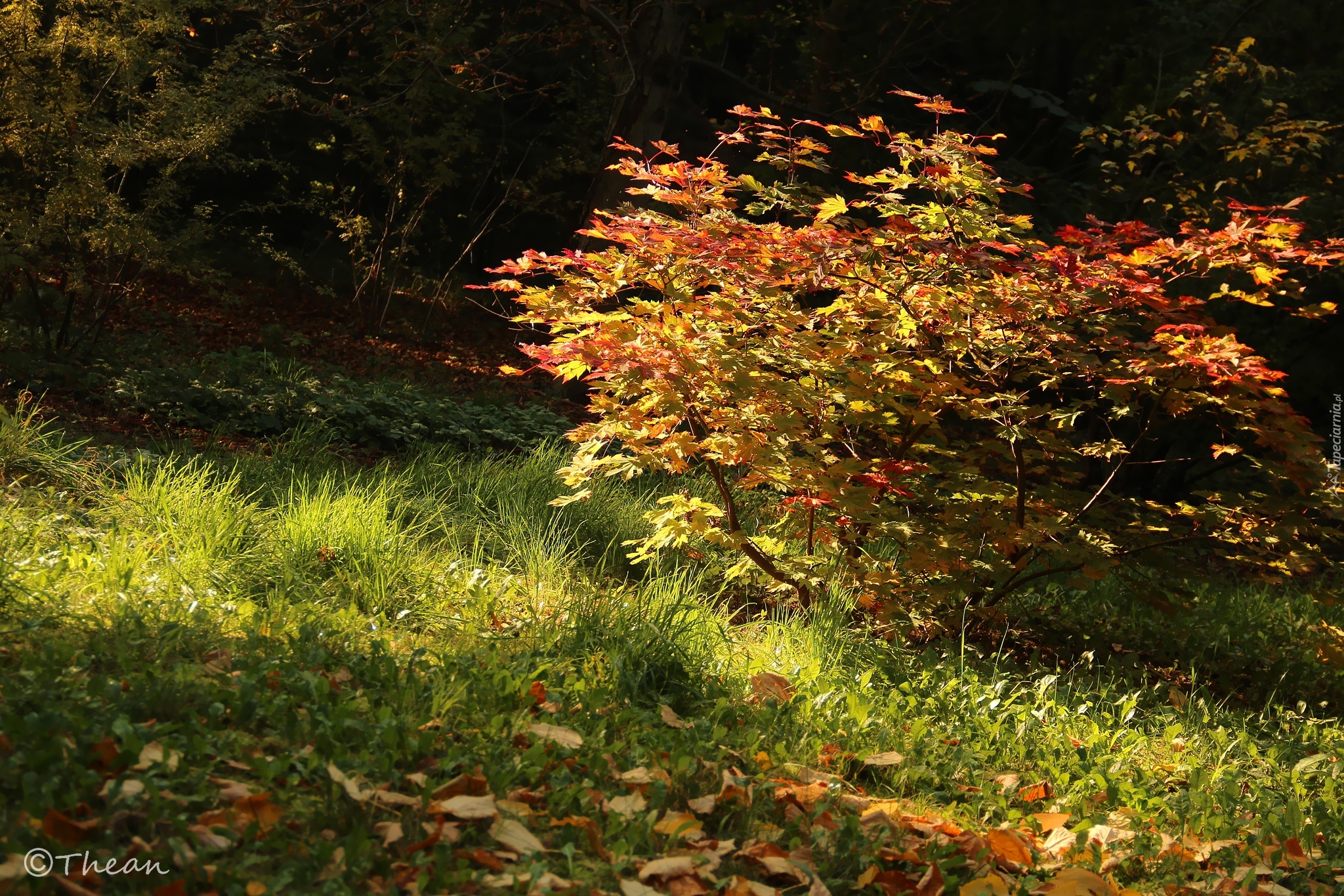 Edytor tapety: Kolorowe, Liście, Drzewko, Trawa, Jesień