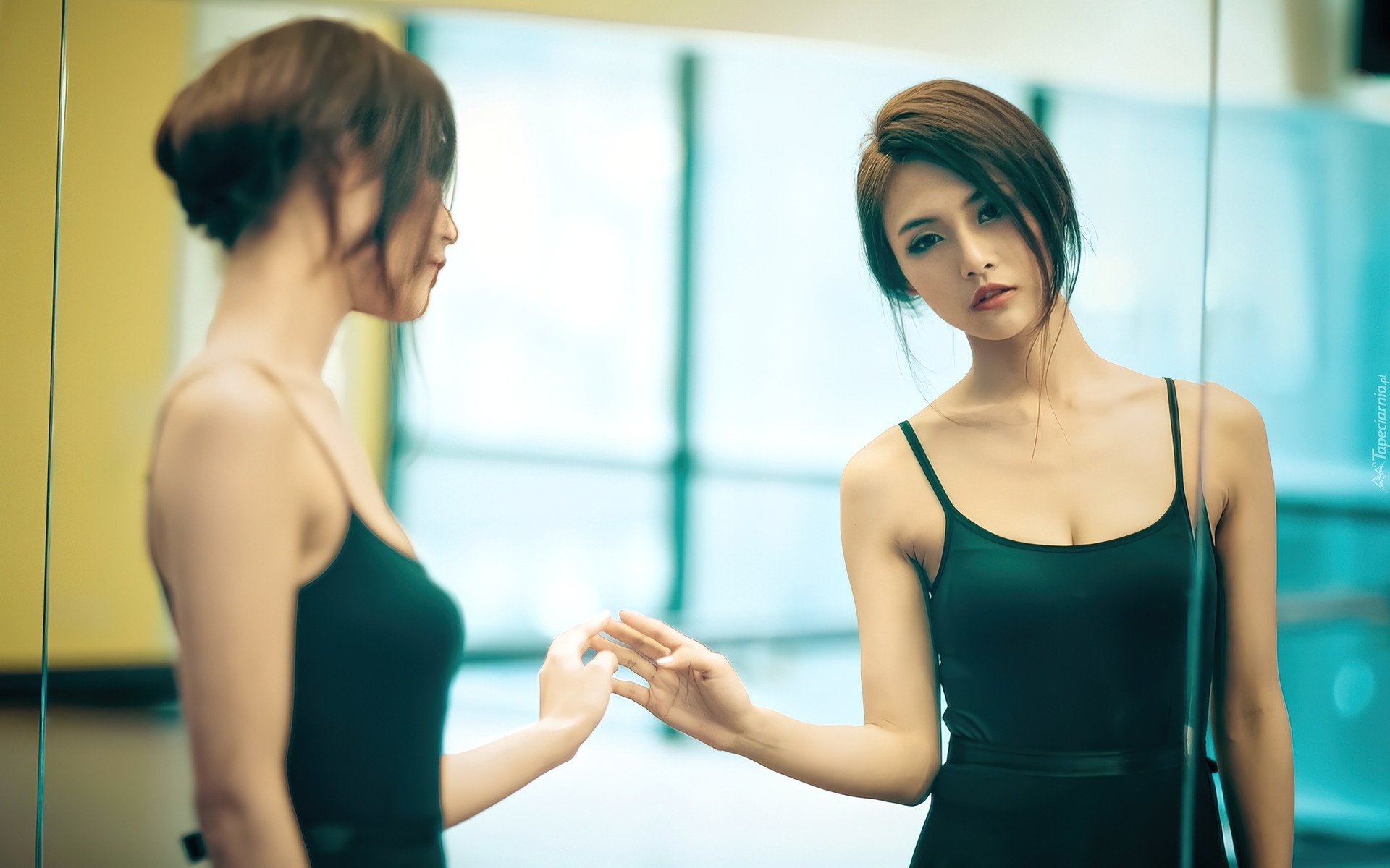 Edytor tapety: Kobieta, Odbicie, Lustrzane