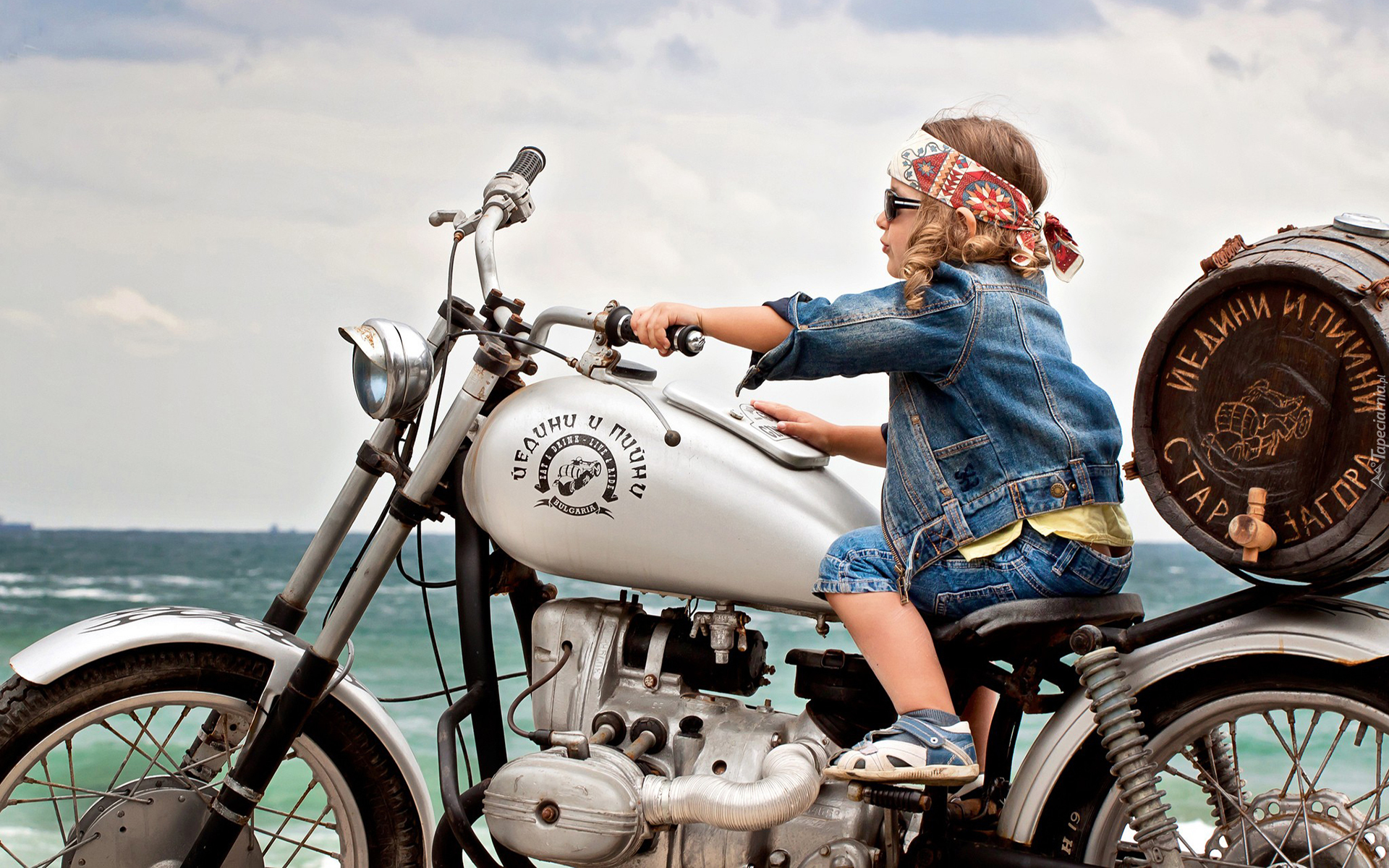 Edytor tapety: Dziecko, Motocykl, Niebo, Woda