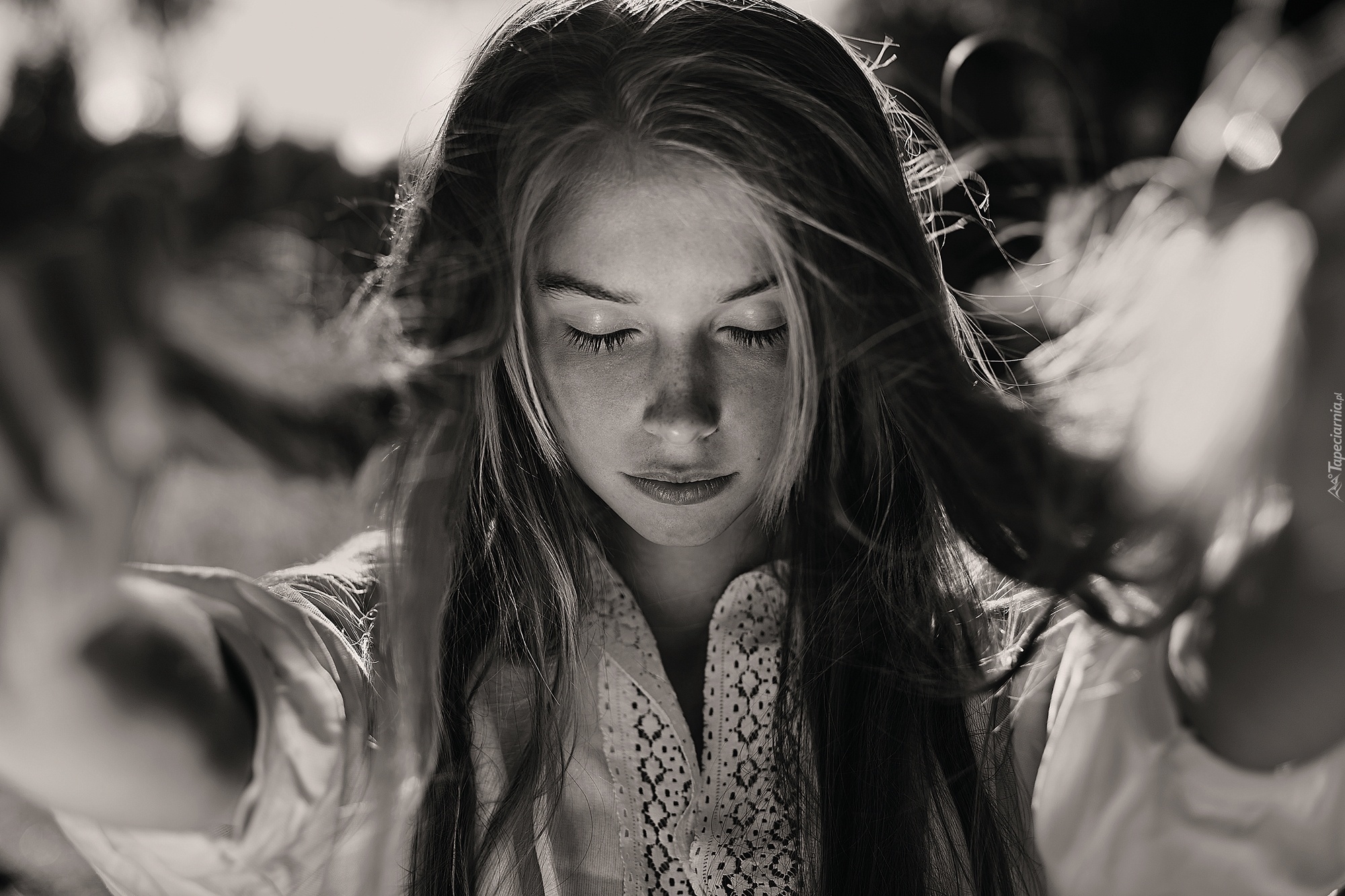 Edytor tapety: Kobieta, Długie, Włosy, Zamknięte, Oczy