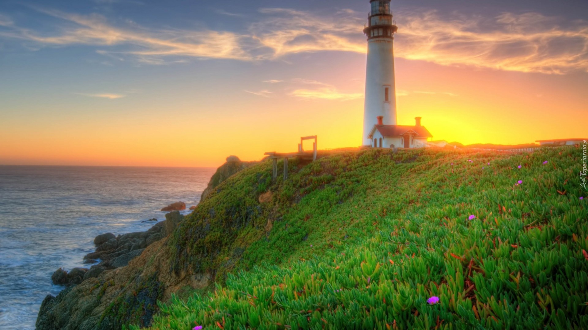 Edytor tapety: Latarnia, Morska, Łąka, Morze