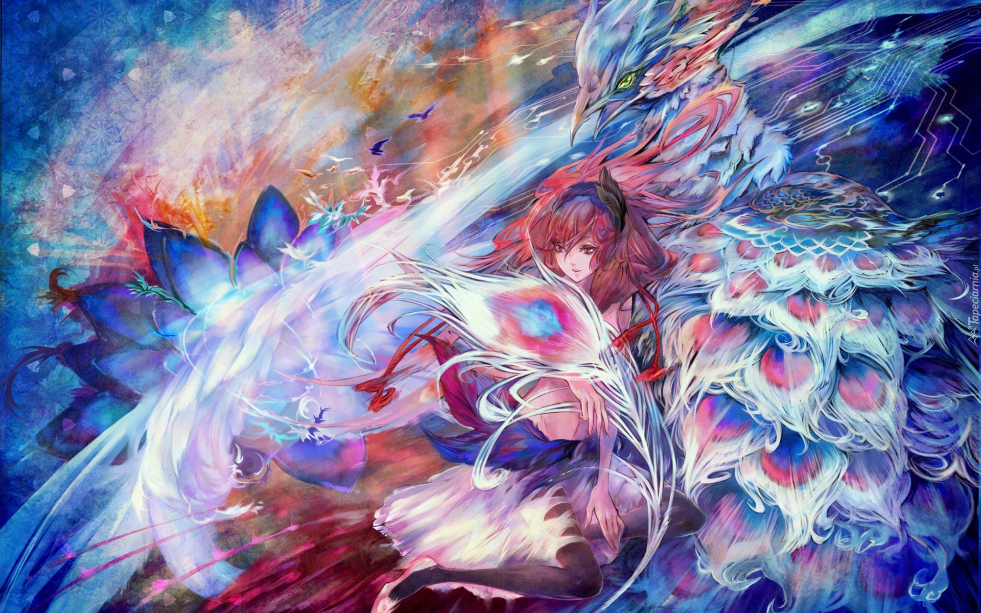 Edytor tapety: Dziewczyna, Pawie, Pióra, Kolorowa
