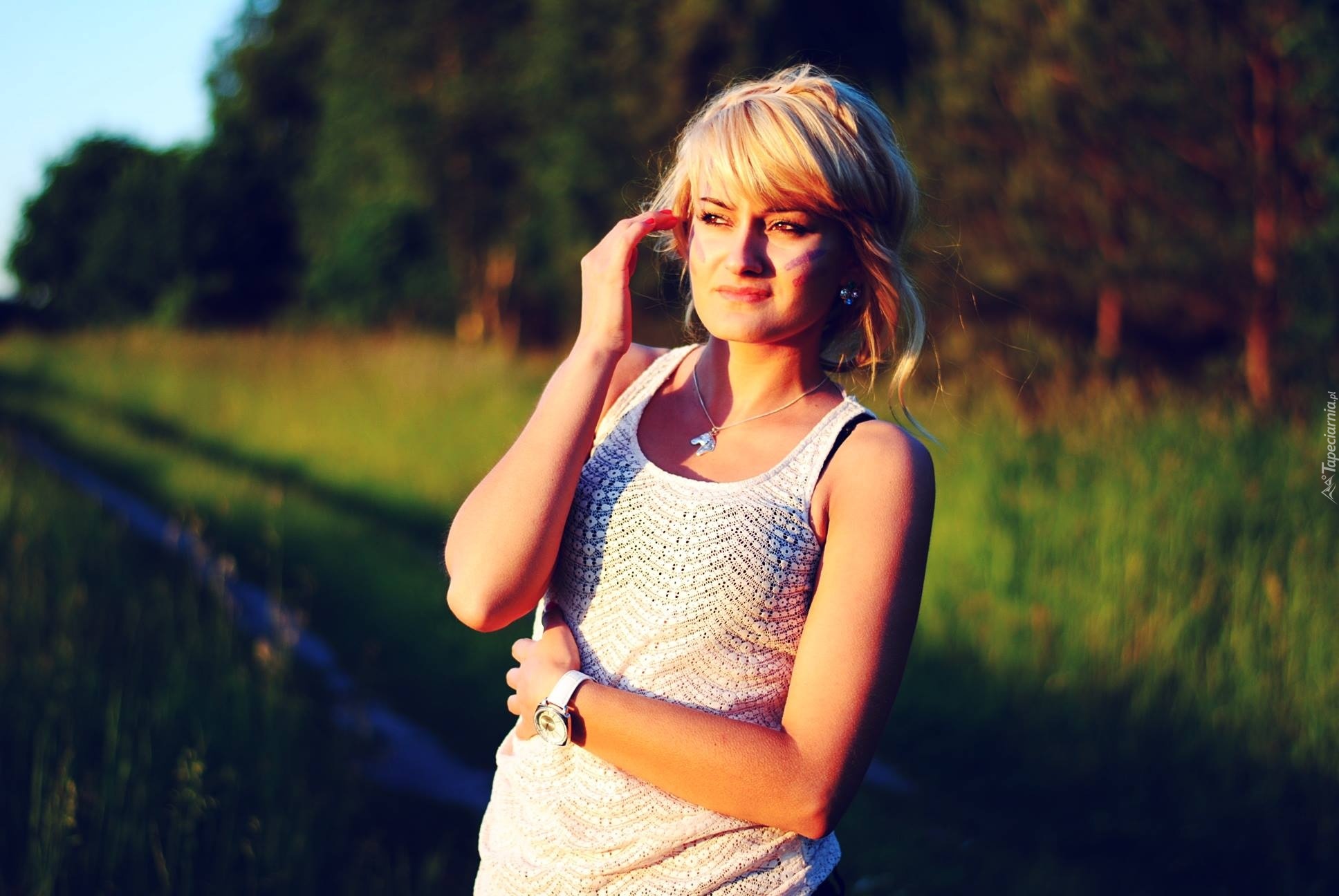 Edytor tapety: Zamyślona, Kobieta, Blondynka