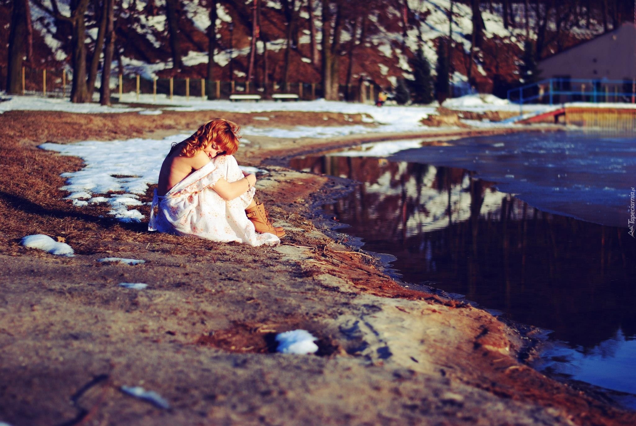 Edytor tapety: Ruda, Kobieta, Jezioro, Zima