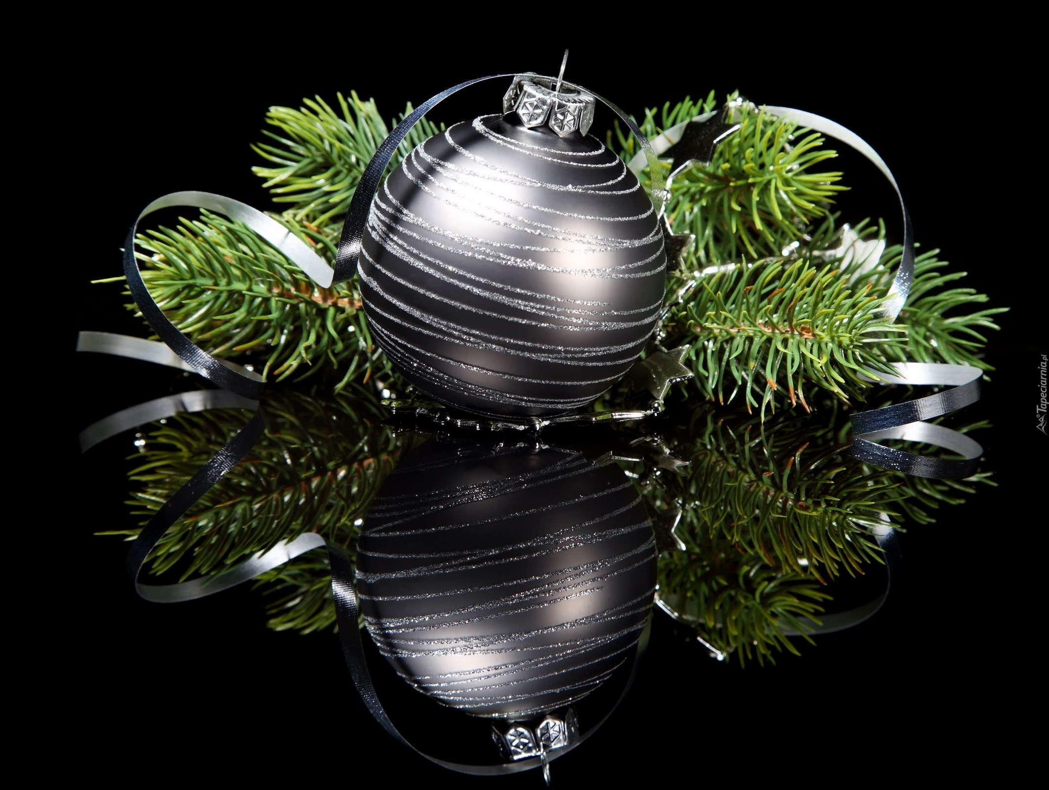 Edytor tapety: Bombka, Świerk, Czarne, Tło, Święta