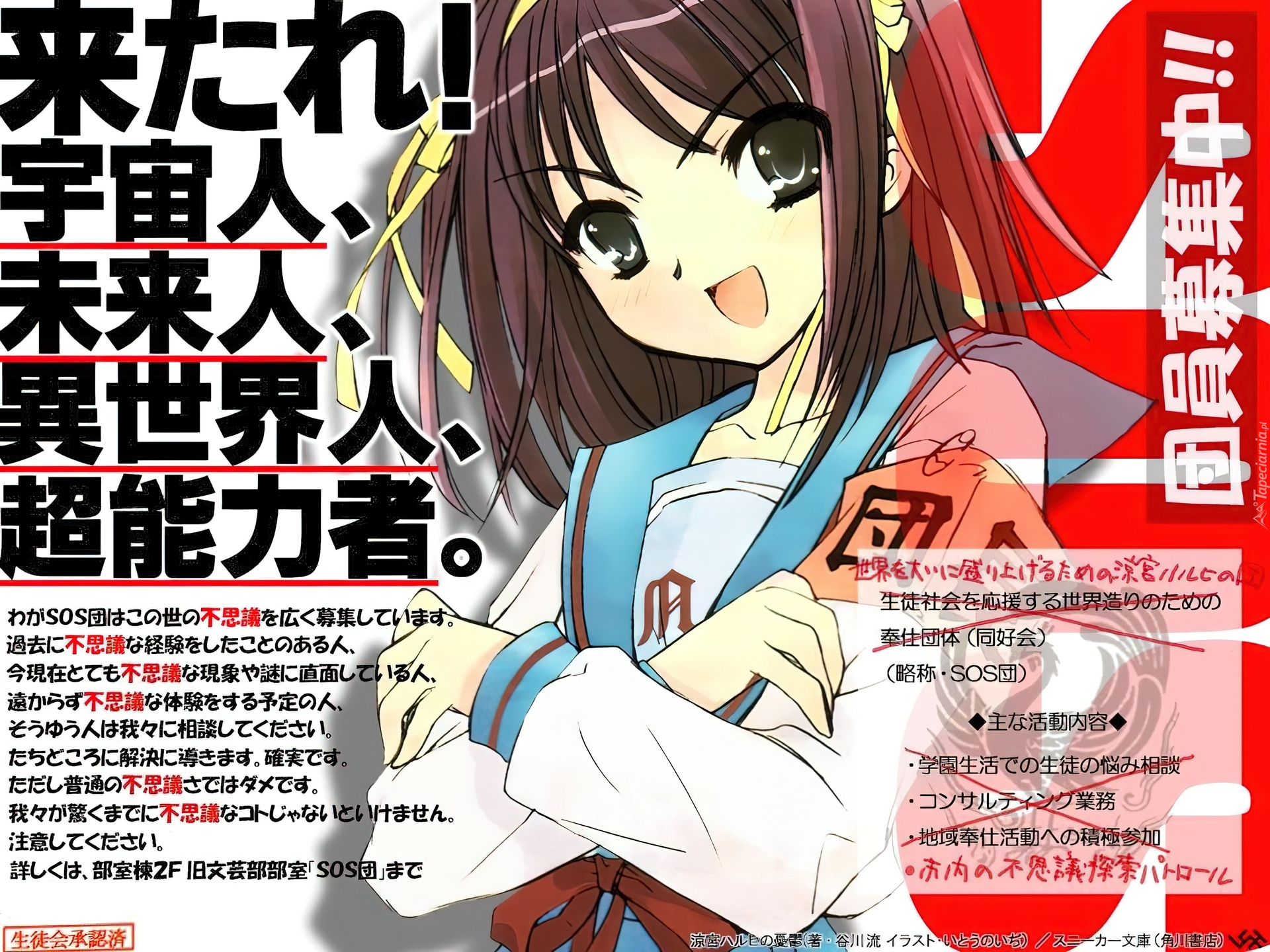 Edytor tapety: Suzumiya Haruhi No Yuuutsu, ciemne włosy, chińskie znaki