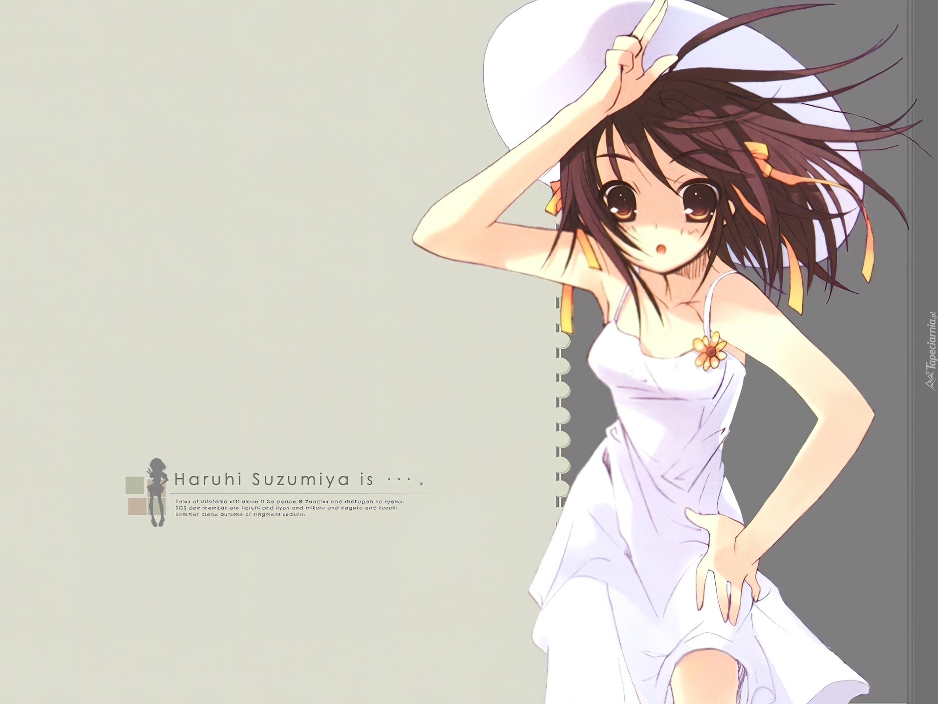 Edytor tapety: Suzumiya Haruhi No Yuuutsu, biała sukienka, kapelusz