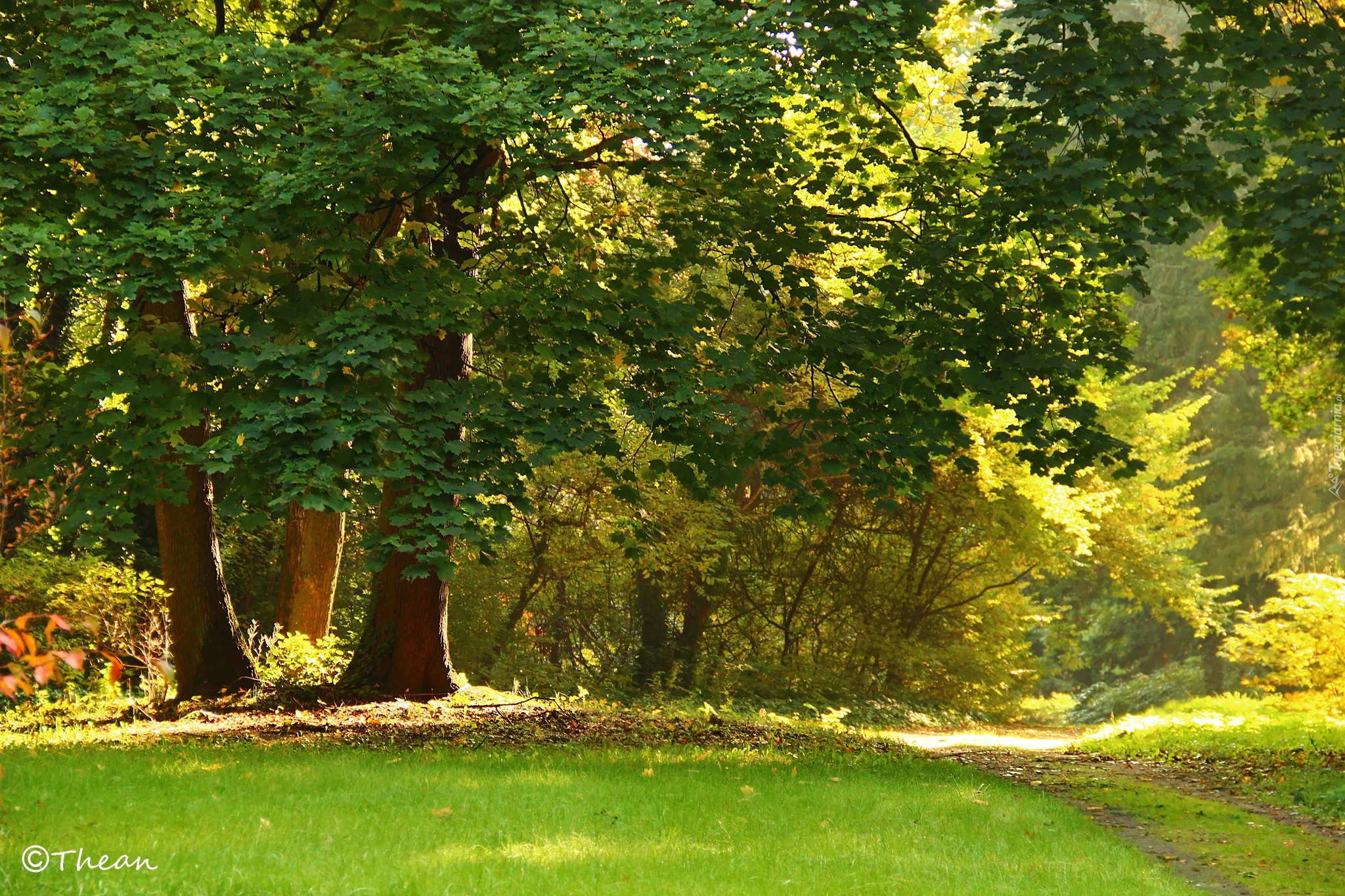 Edytor tapety: Drzewa, Trawa, Liście, Jesień, Ścieżka