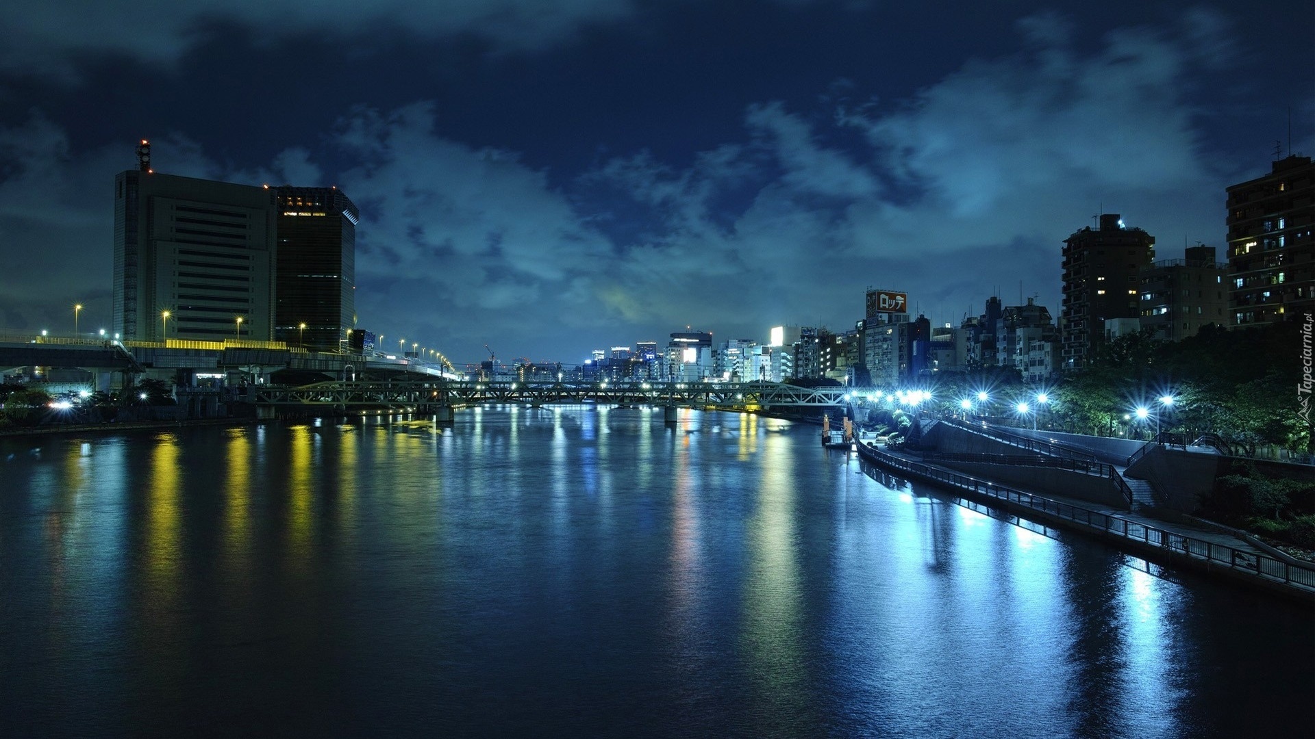 Edytor tapety: Niebo, Rzeka, Most, Miasto, Noc, Odbicie