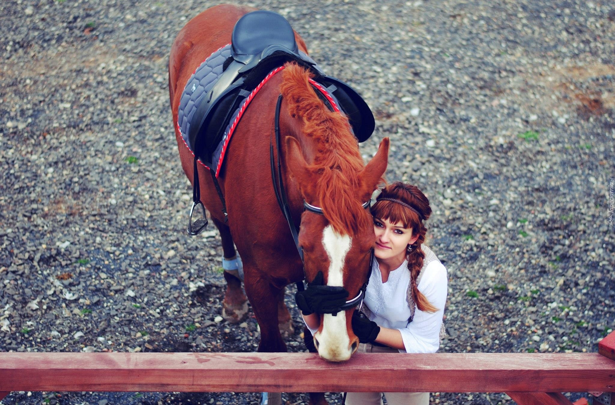 Edytor tapety: Kobieta, Zagroda, Koń