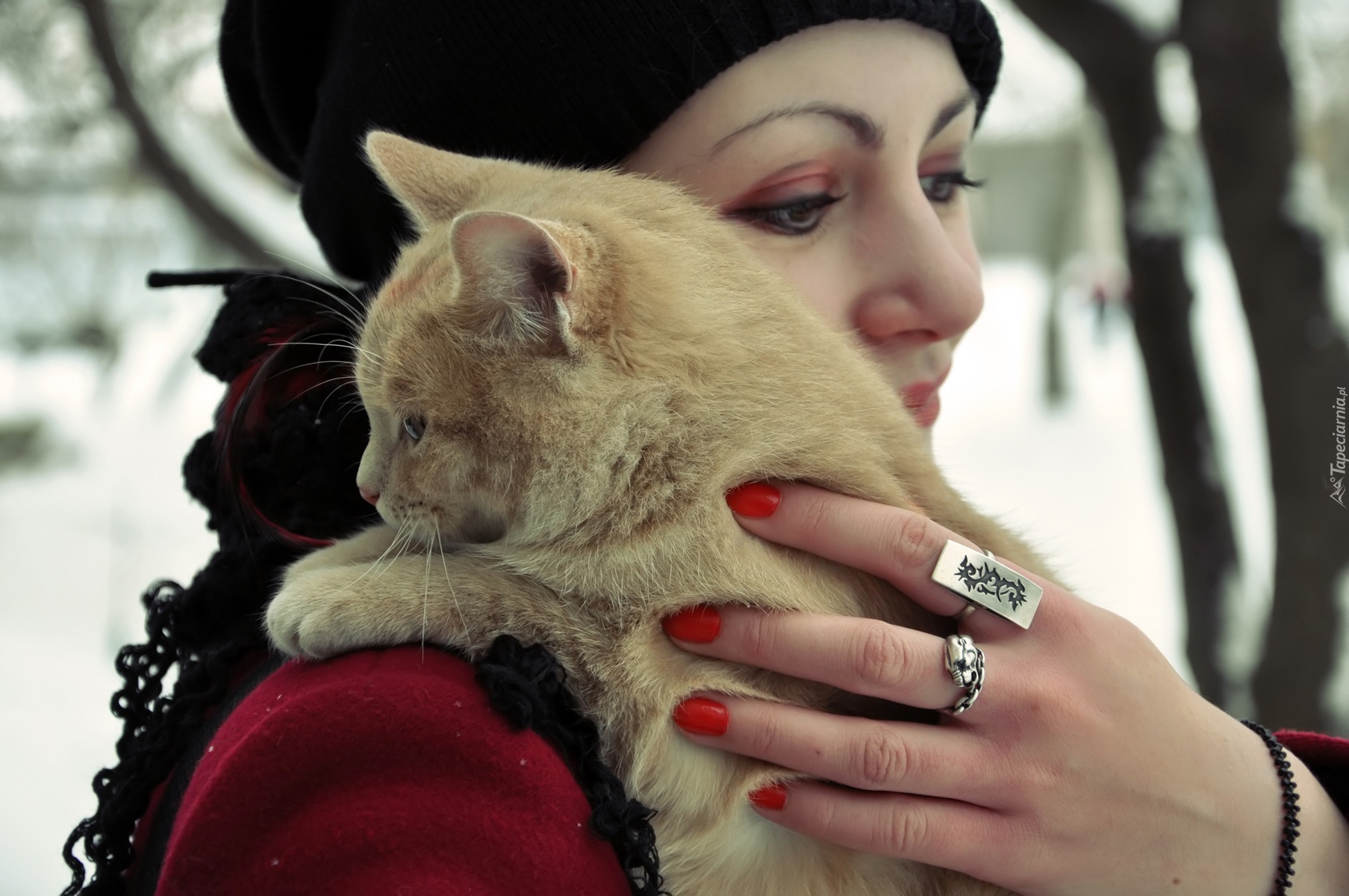 Edytor tapety: Kobieta, Kot, Przytulenie, Biżuteria, Makijaż