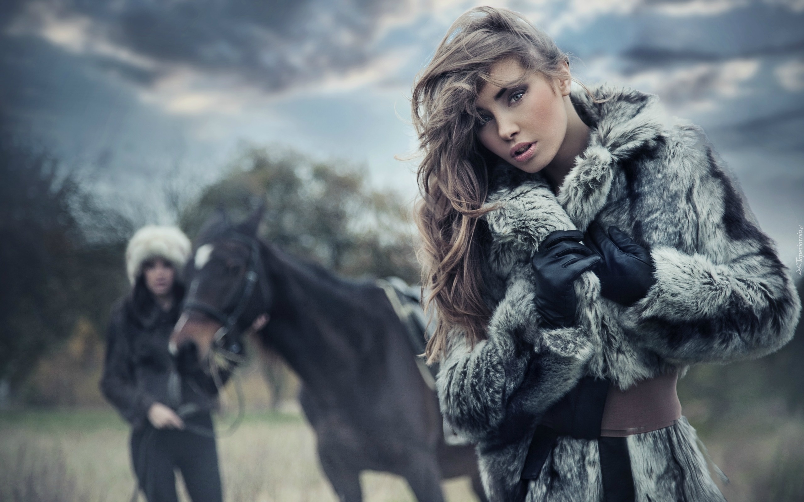 Edytor tapety: Piękna, Kobieta, Koń, Łąka