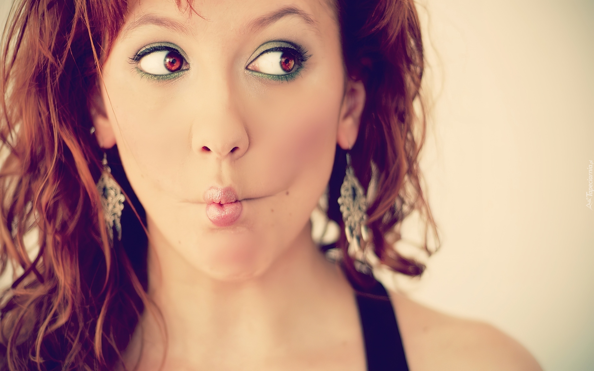 Edytor tapety: Kobieta, Twarz, Duże, Oczy, Mina
