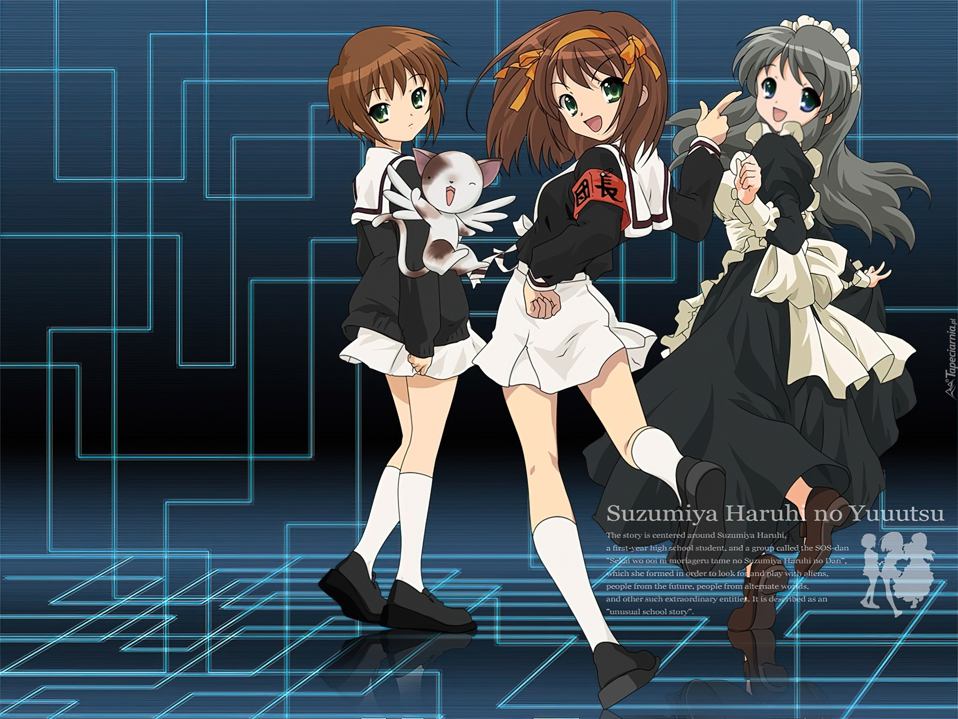 Edytor tapety: Suzumiya Haruhi No Yuuutsu, dziewczynki, zwierzątko