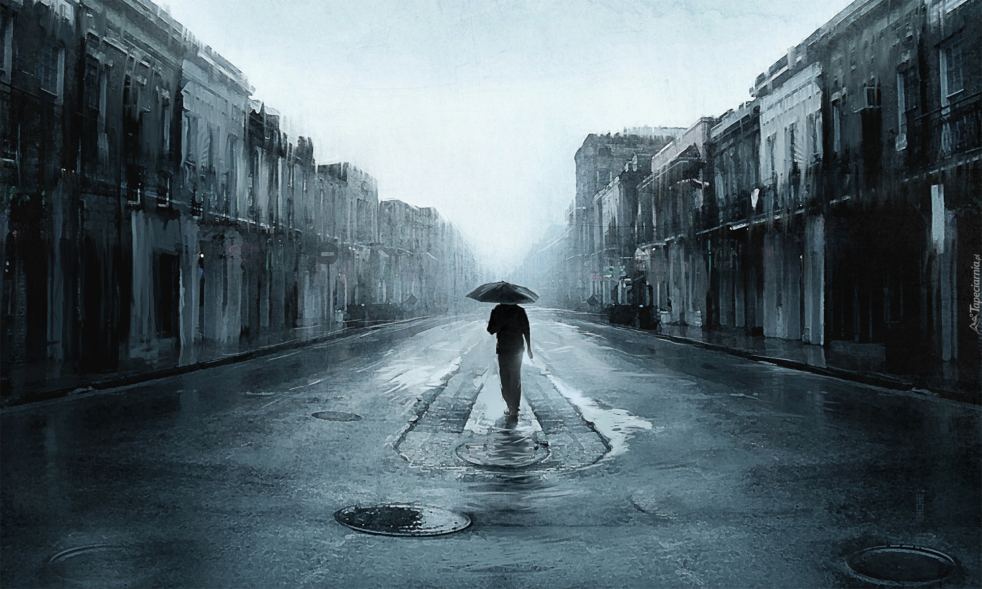 Edytor tapety: Obraz, Ulica, Mężczyzna, Deszcz, Parasol