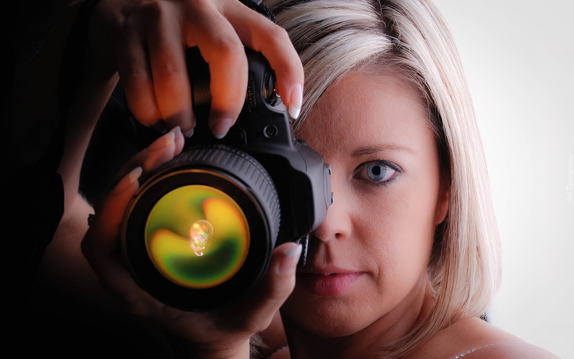 Edytor tapety: Kobieta, Blondynka, Aparat, Fotograficzny