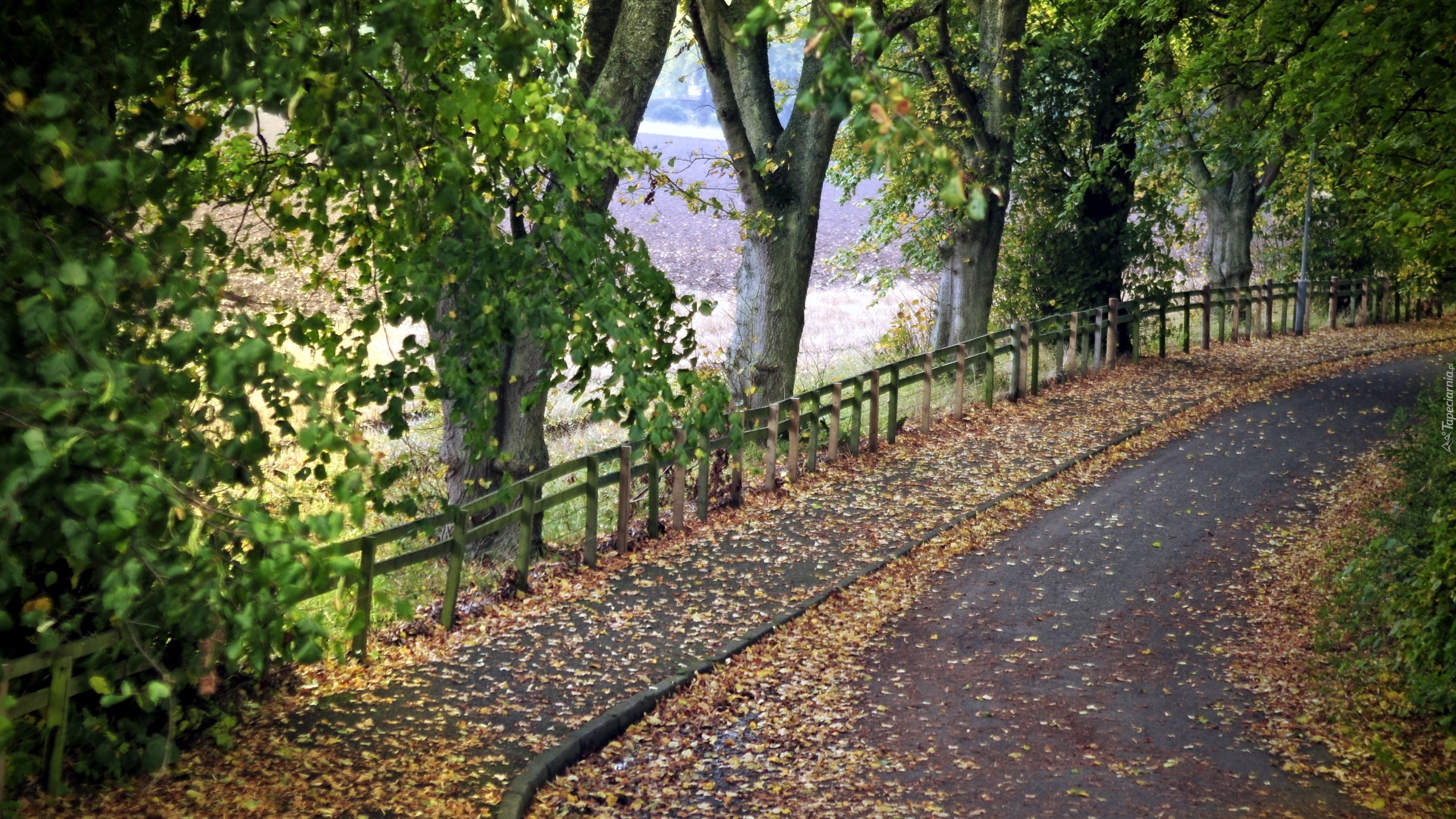 Edytor tapety: Droga, Góra, Drzewa, Liście, Jesień