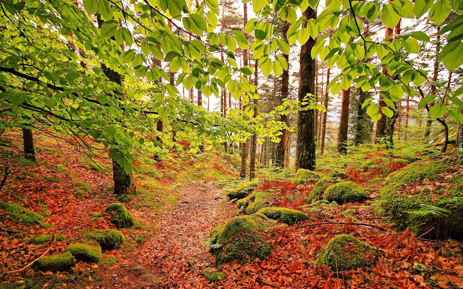 Edytor tapety: Las, Ścieżka, Kamienie, Liście, Jesień