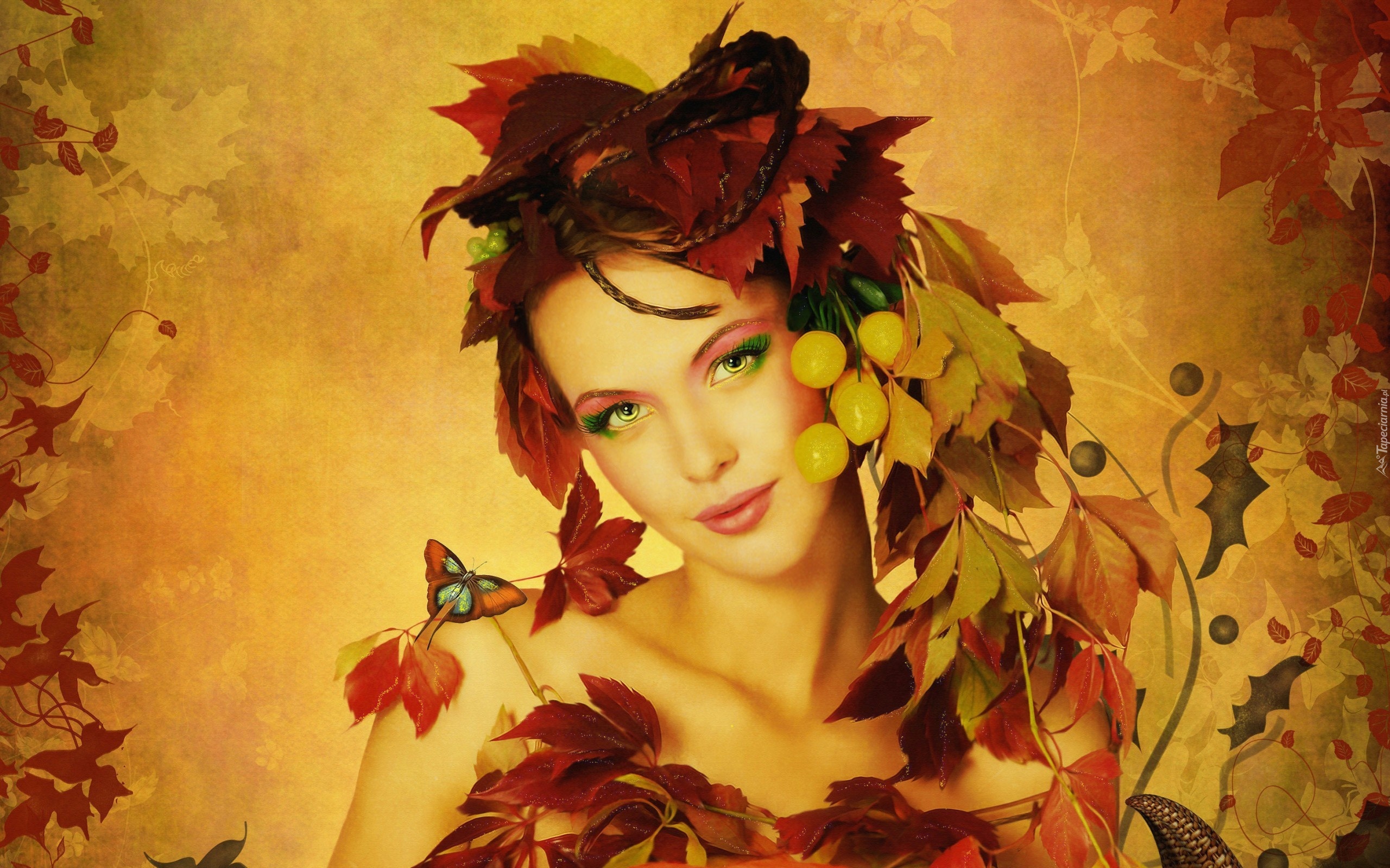 Edytor tapety: Pani, Jesień, Liście, Grafika