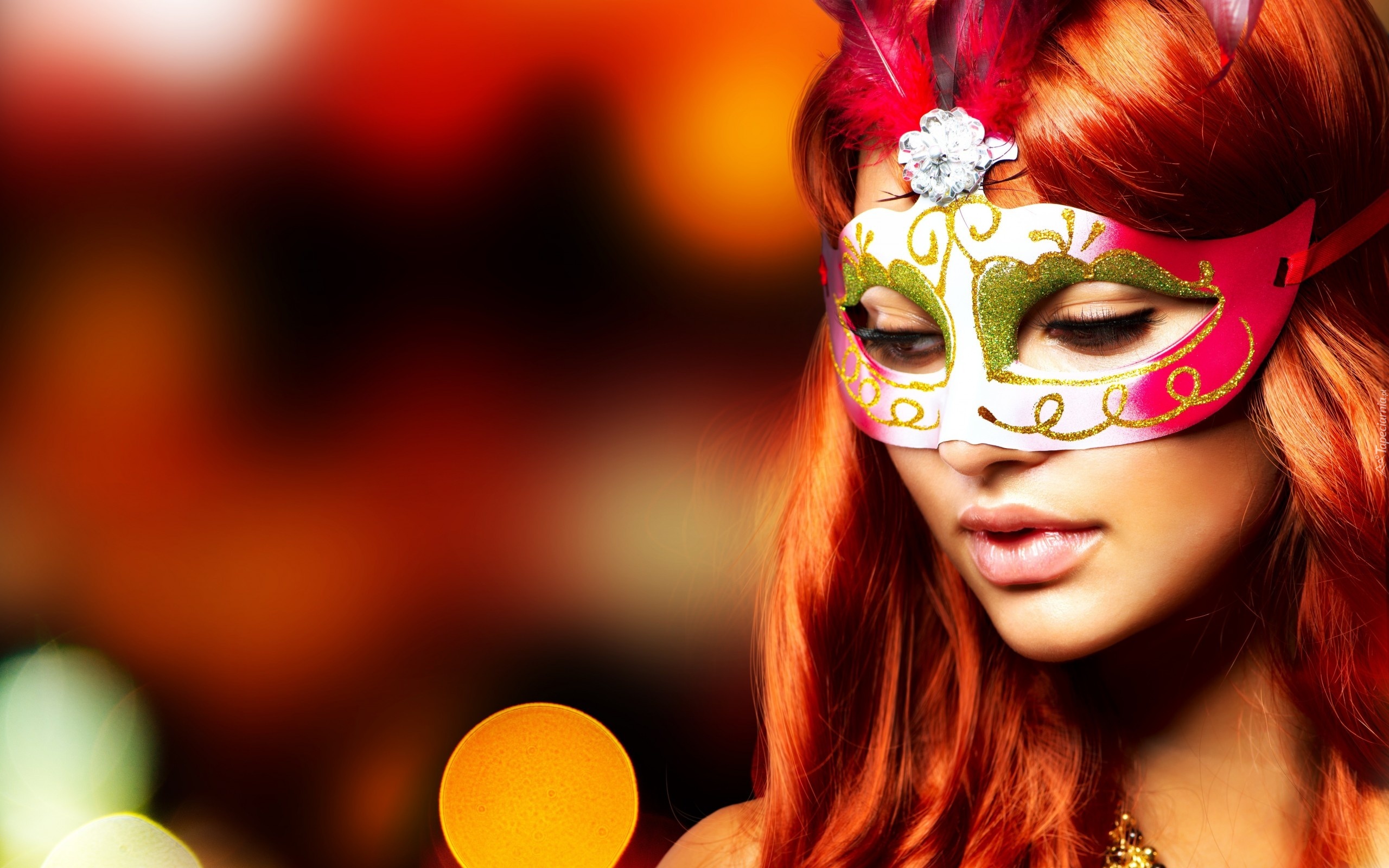 Edytor tapety: Tajemnicza, Rudowłosa, Kobieta, Maska