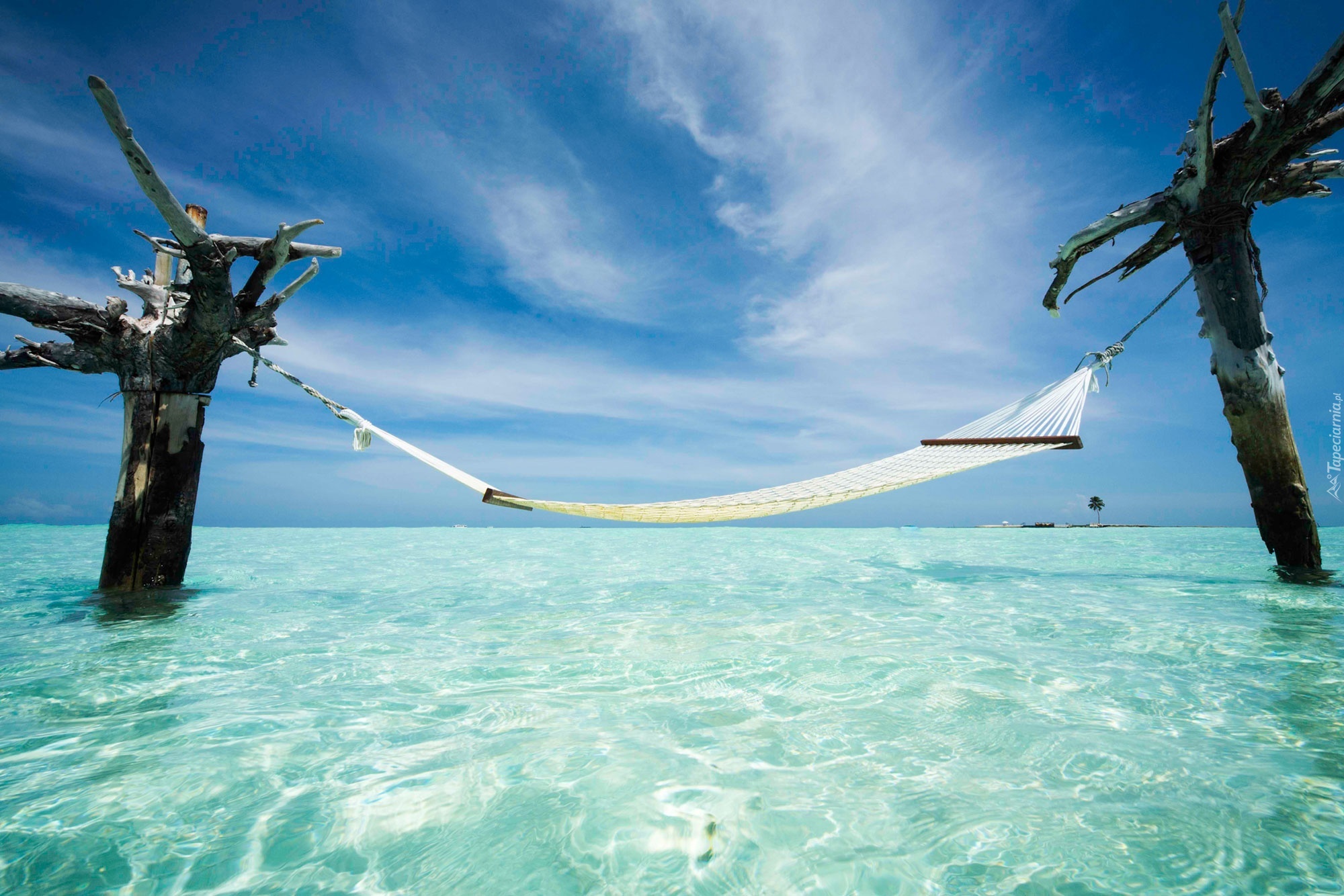 Edytor tapety: Morze, Drzewa, Hamak