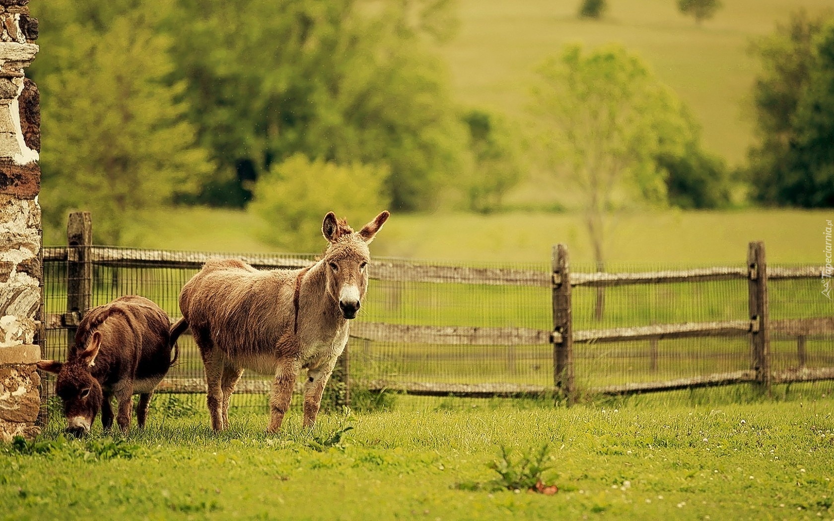 Edytor tapety: Osiołki, Zagroda, Płot