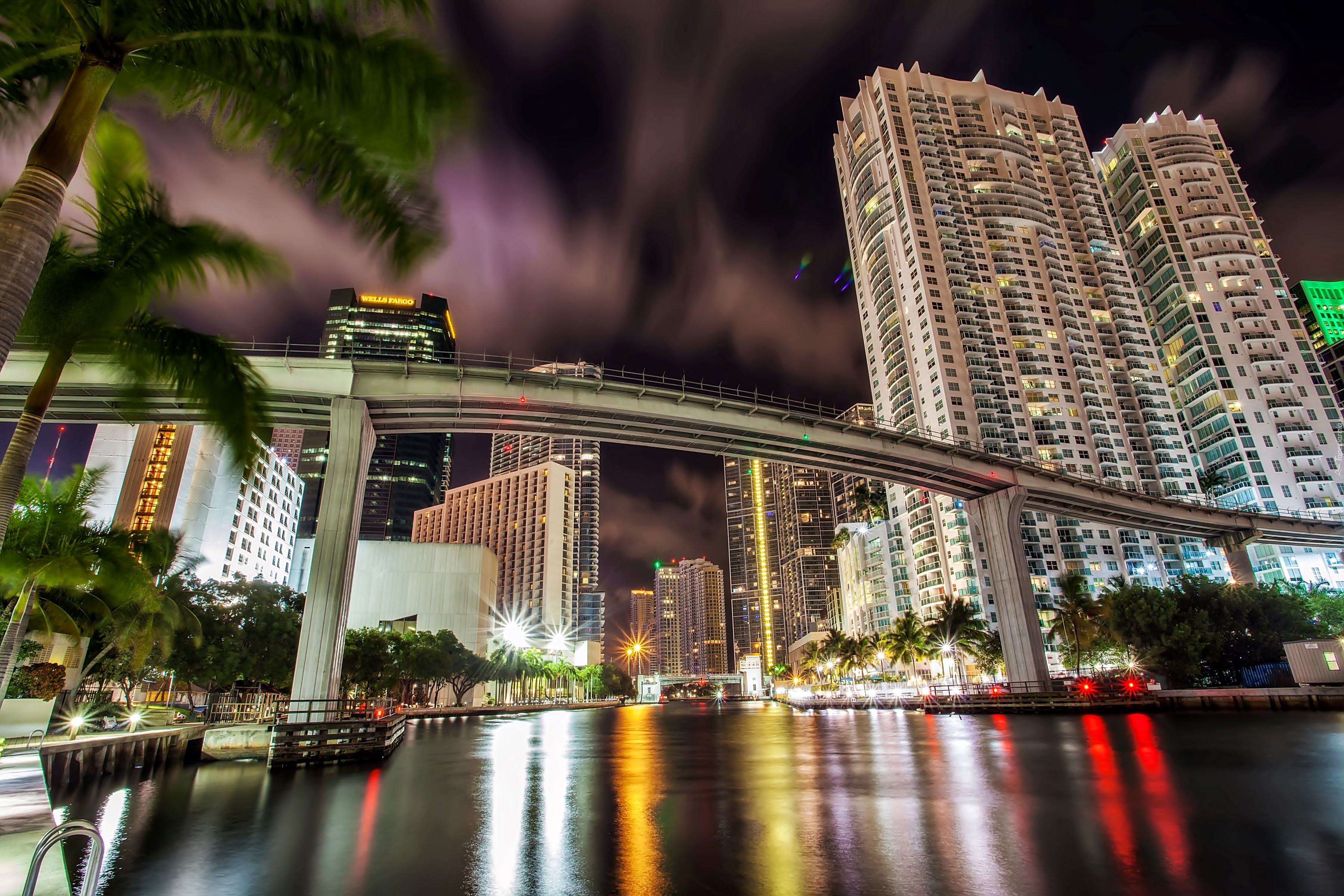 Edytor tapety: Wieżowce, Most, Rzeka, Miami, USA