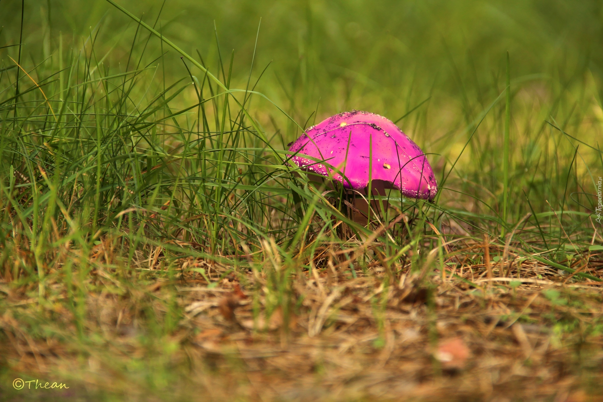 Edytor tapety: Różowy, Muchomor, Grzyb, Trawa