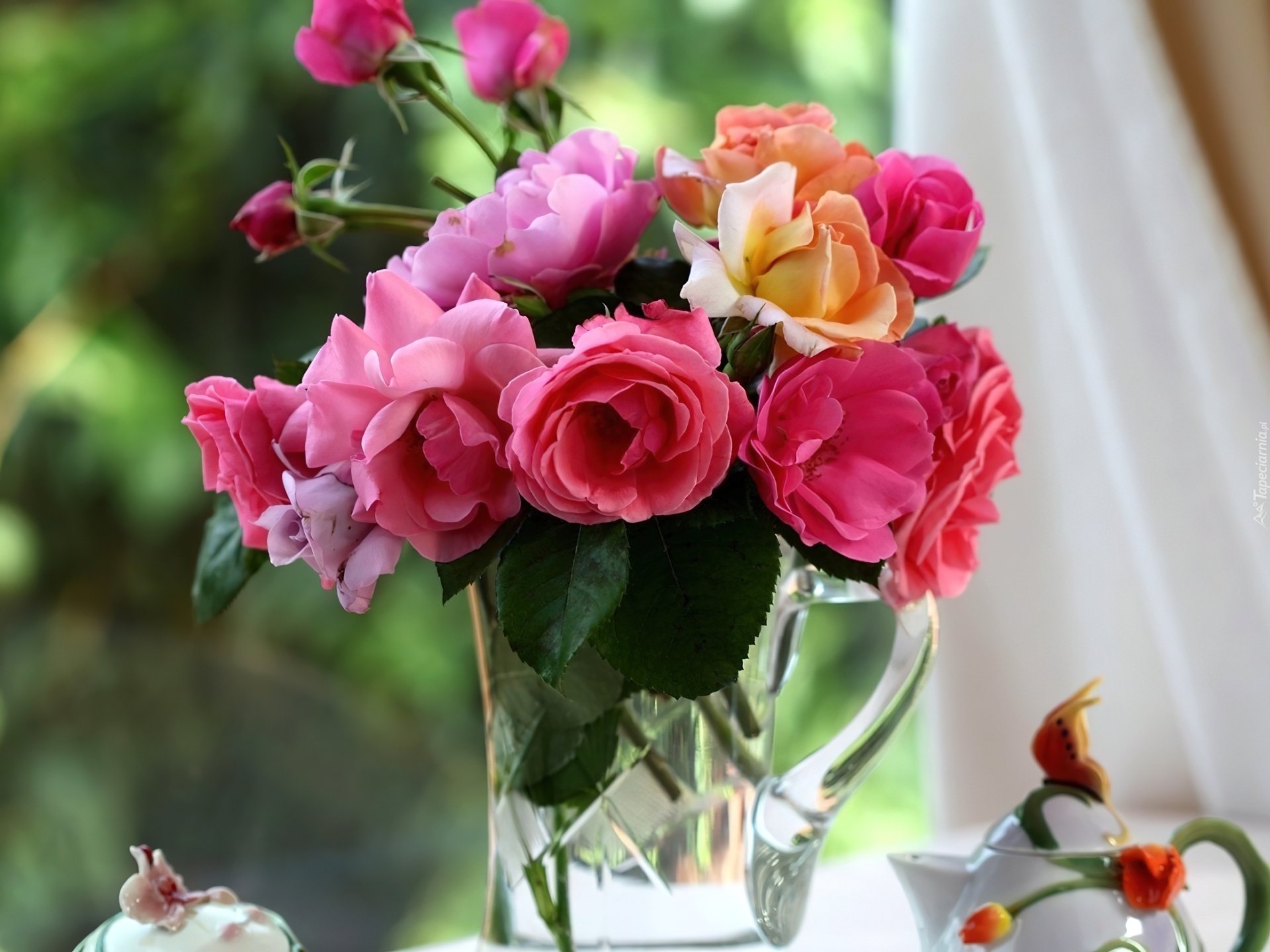 Edytor tapety: Kwiaty, Bukiet, Róż, Wazon