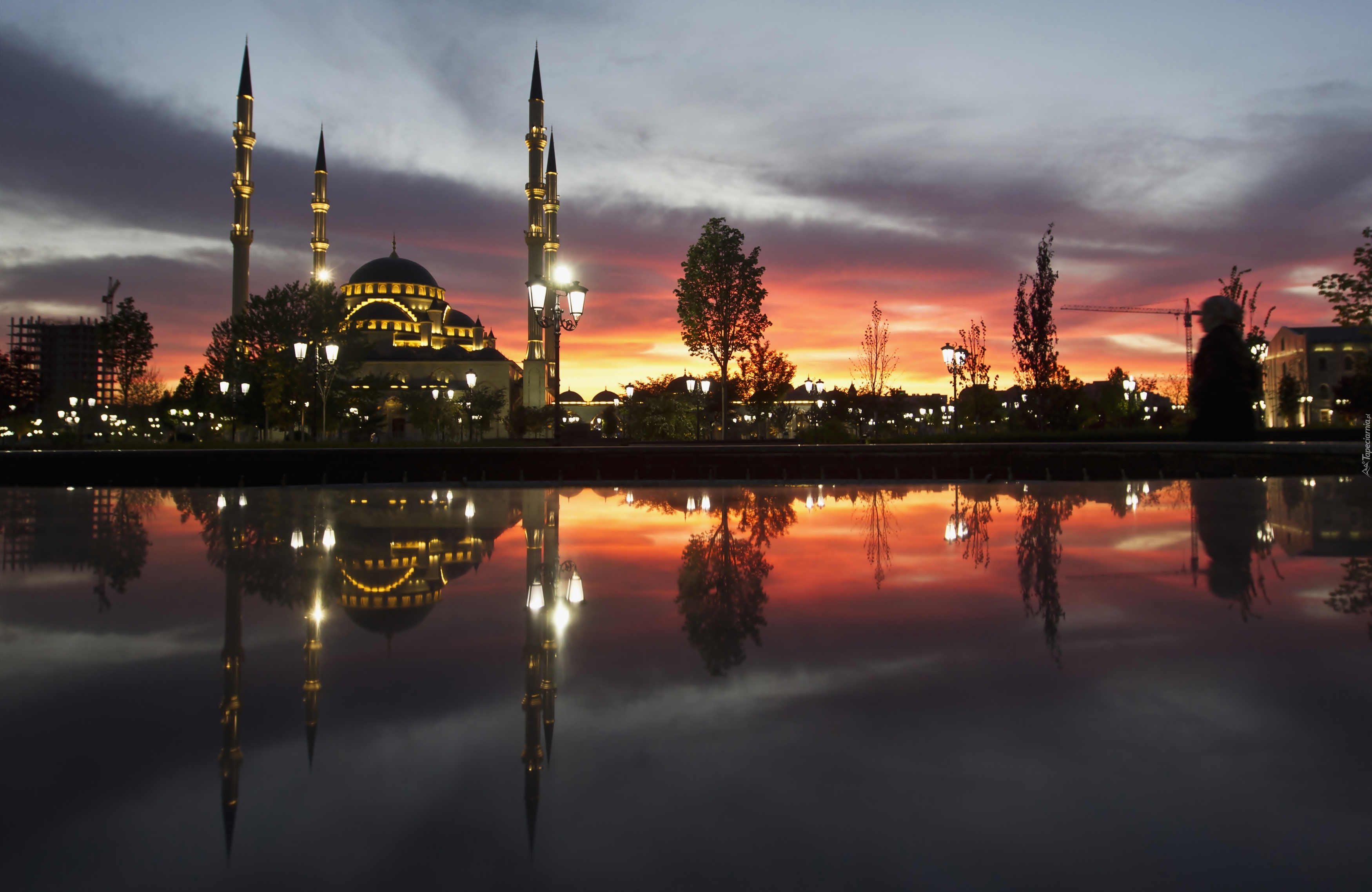 Edytor tapety: Zachód, Słońca, Rzeka, Miasto