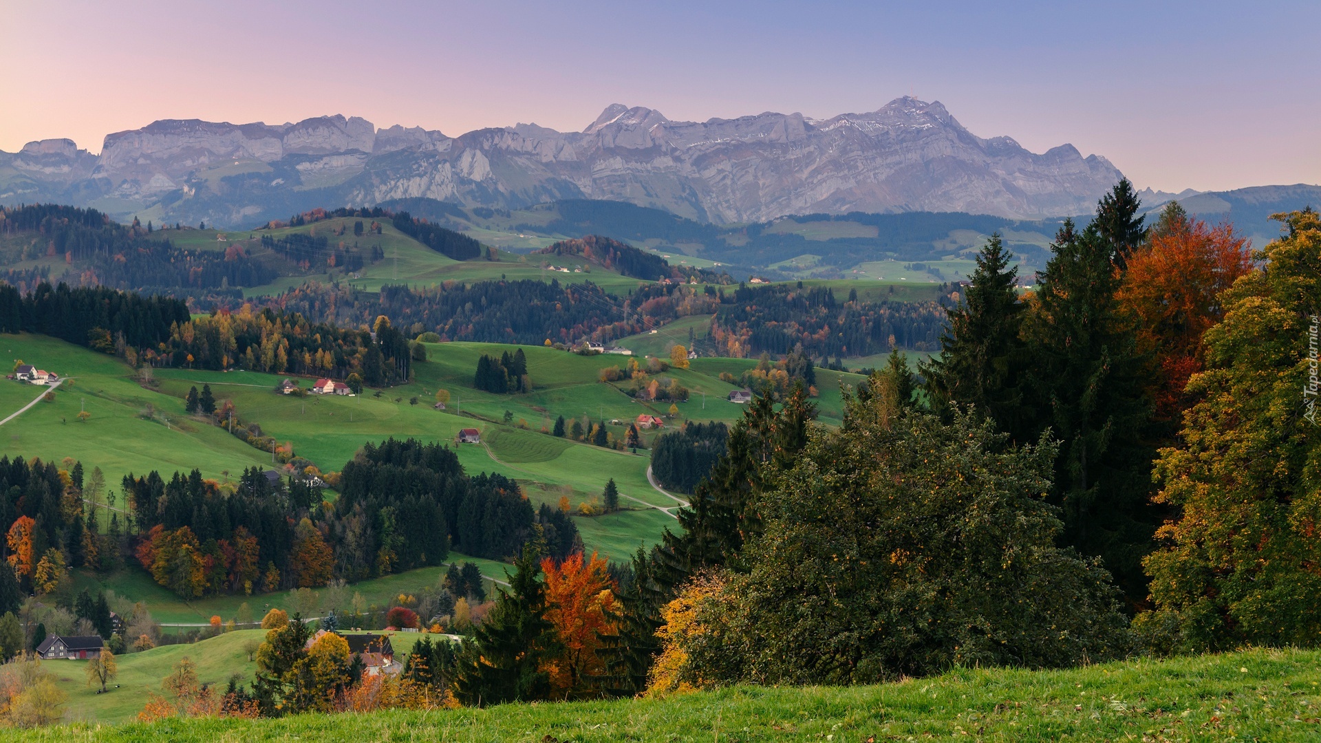 Edytor tapety: Góry, Lasy, Łąki, Domy, Jesień, Panorama