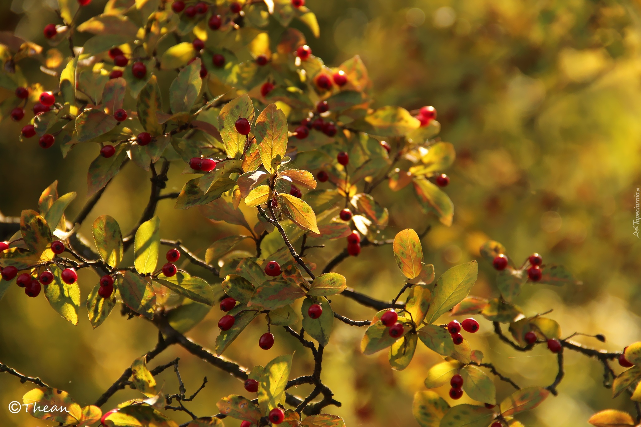 Edytor tapety: Drzewo, Liście, Czerwone, Owoce, Jagody, Jesień