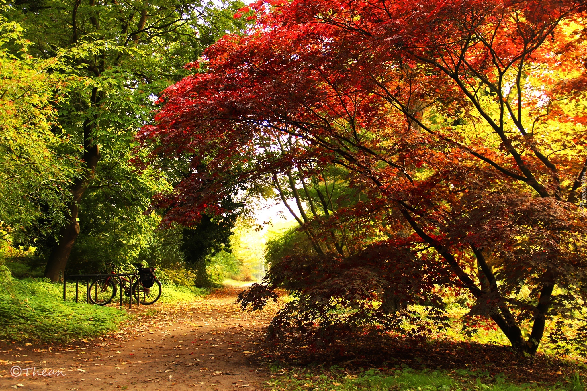 Edytor tapety: Klon Palmowy, Liście, Czerwone, Ścieżka, Park, Jesień