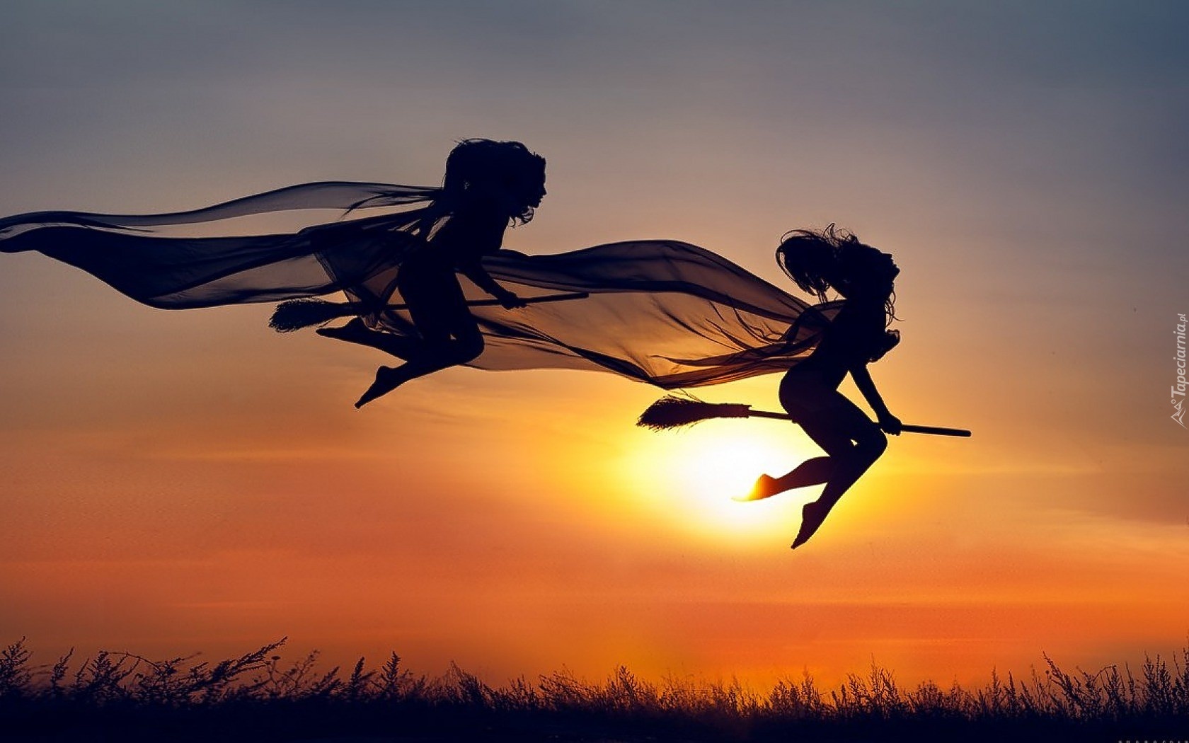 Edytor tapety: Zachód, Słońca, Kobiety, Miotły