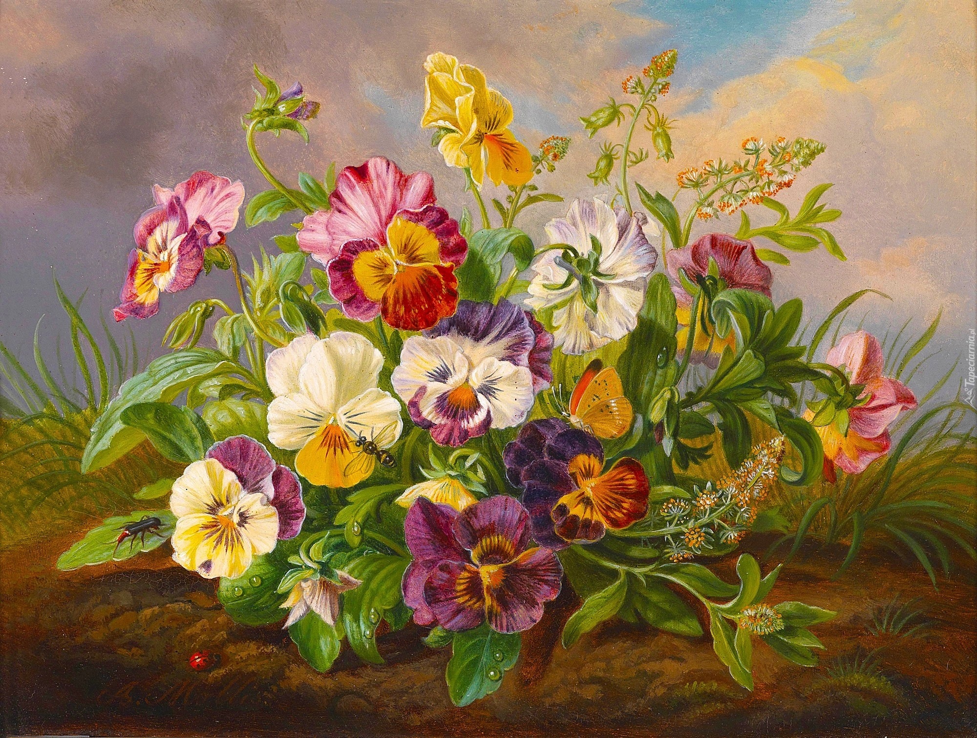 Edytor tapety: Bratki, Bukiet, Obraz