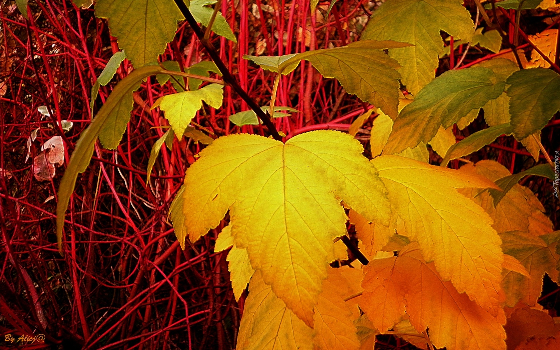Edytor tapety: Żółte, Liście, Czerwone, Gałązki