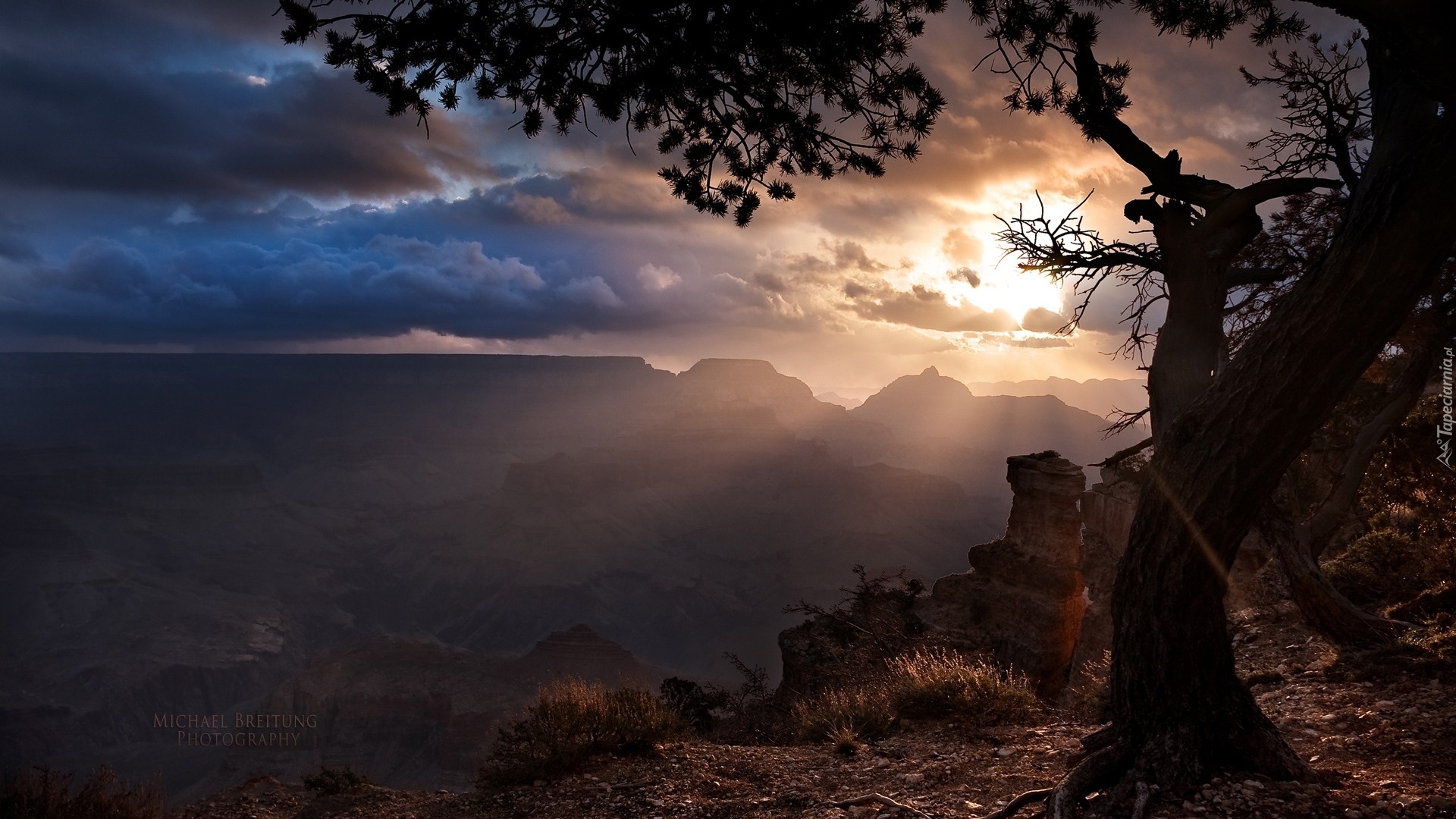 Edytor tapety: Zachód, Słońca, Chmury, Kaniony
