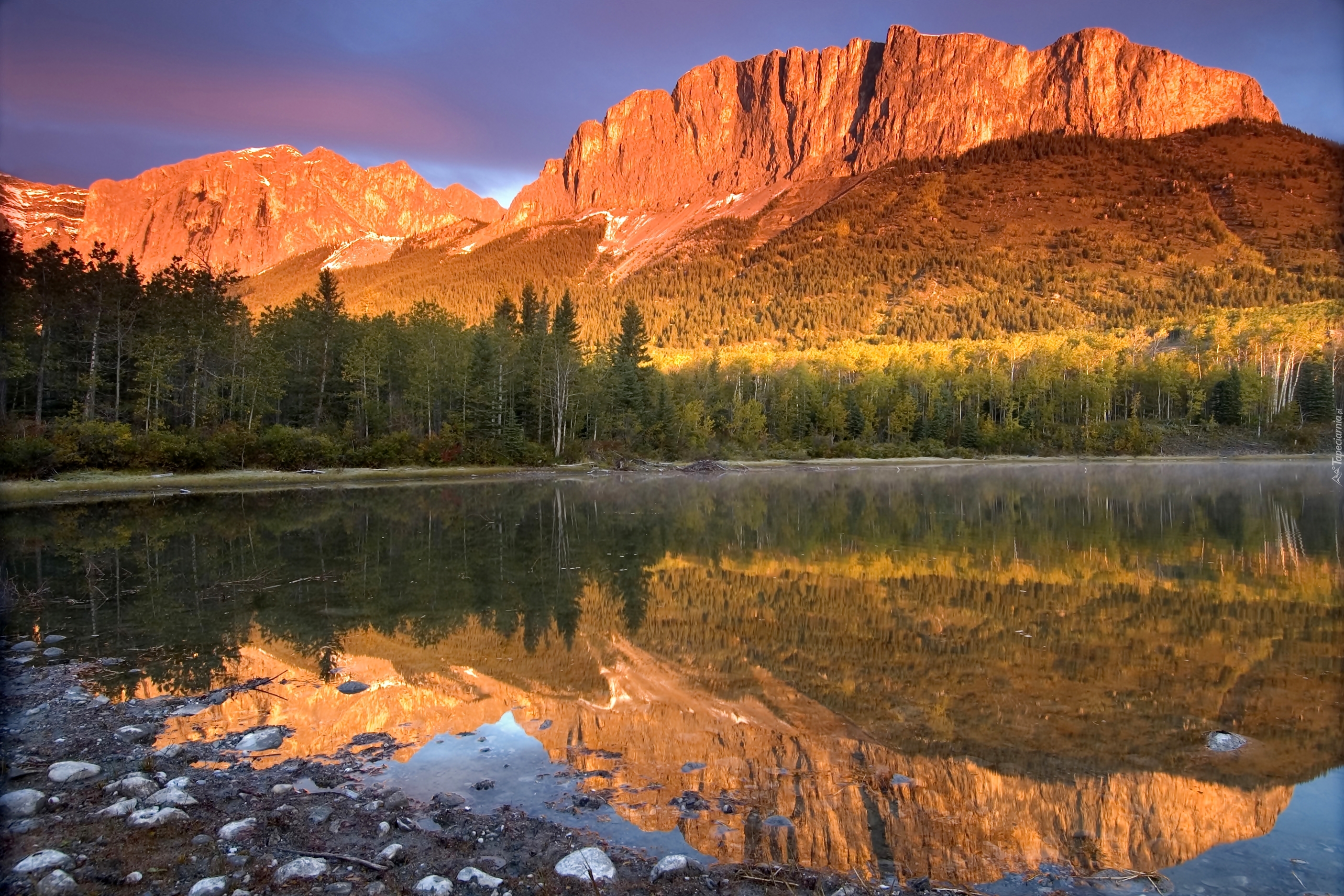 Edytor tapety: Jezioro, Las, Skały, Odbicie