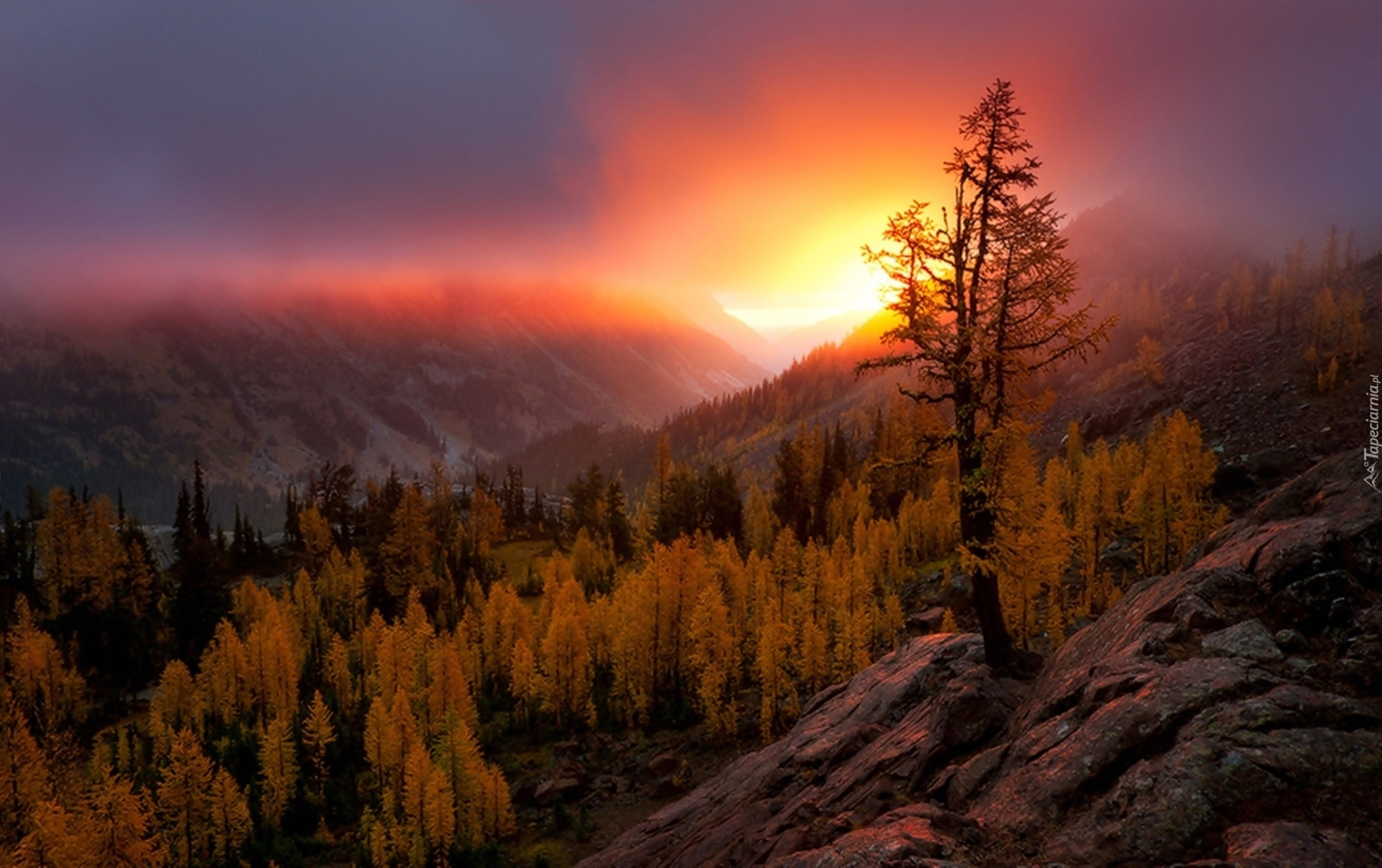 Edytor tapety: Zachód, Słońca, Skały, Las