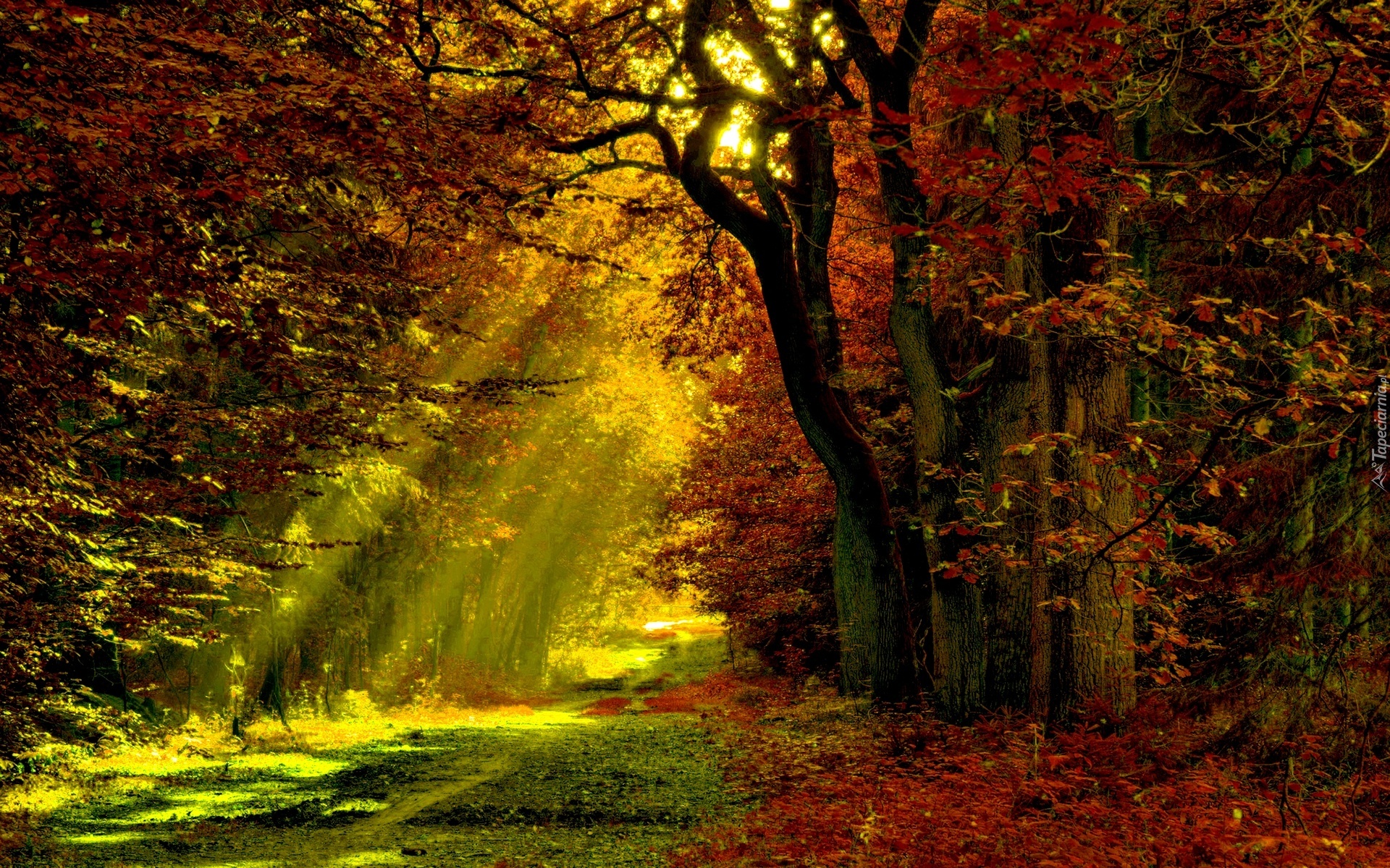 Edytor tapety: Las, Ścieżka, Promienie, Słońca, Jesień