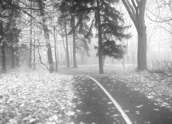 Edytor tapety: Park, Mgła, Alejka, Liście, Jesień