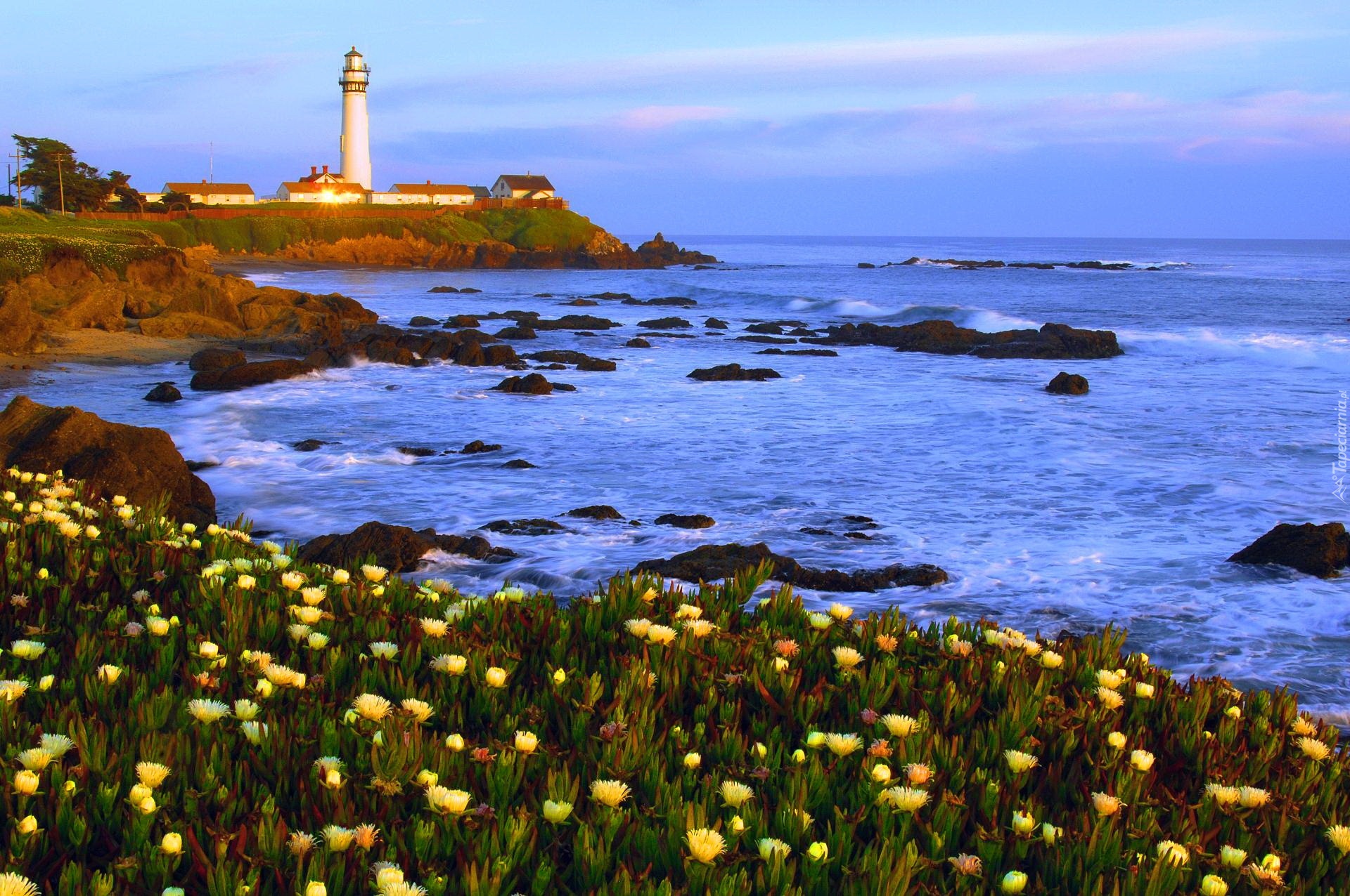 Edytor tapety: Latarnia Morska, Morze, Kwiaty