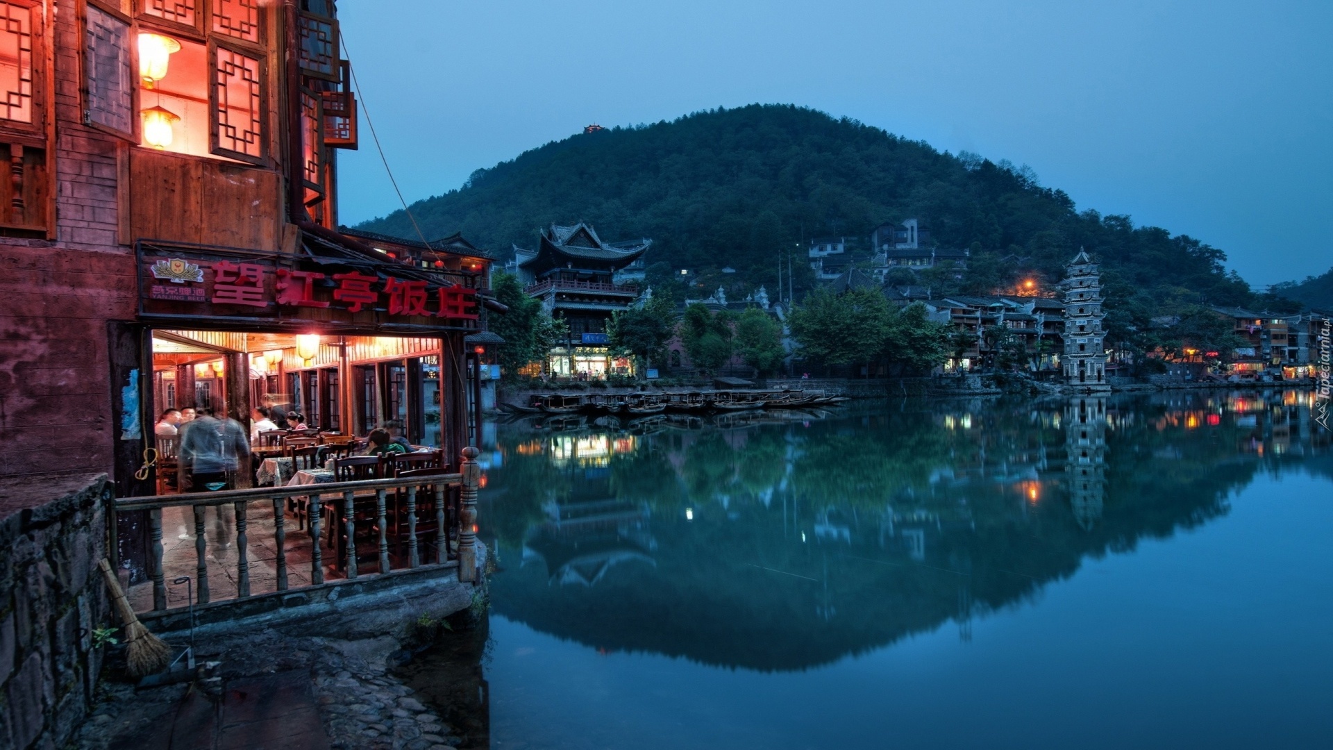 Edytor tapety: Restauracja, Rzeka, Góra, Chiny