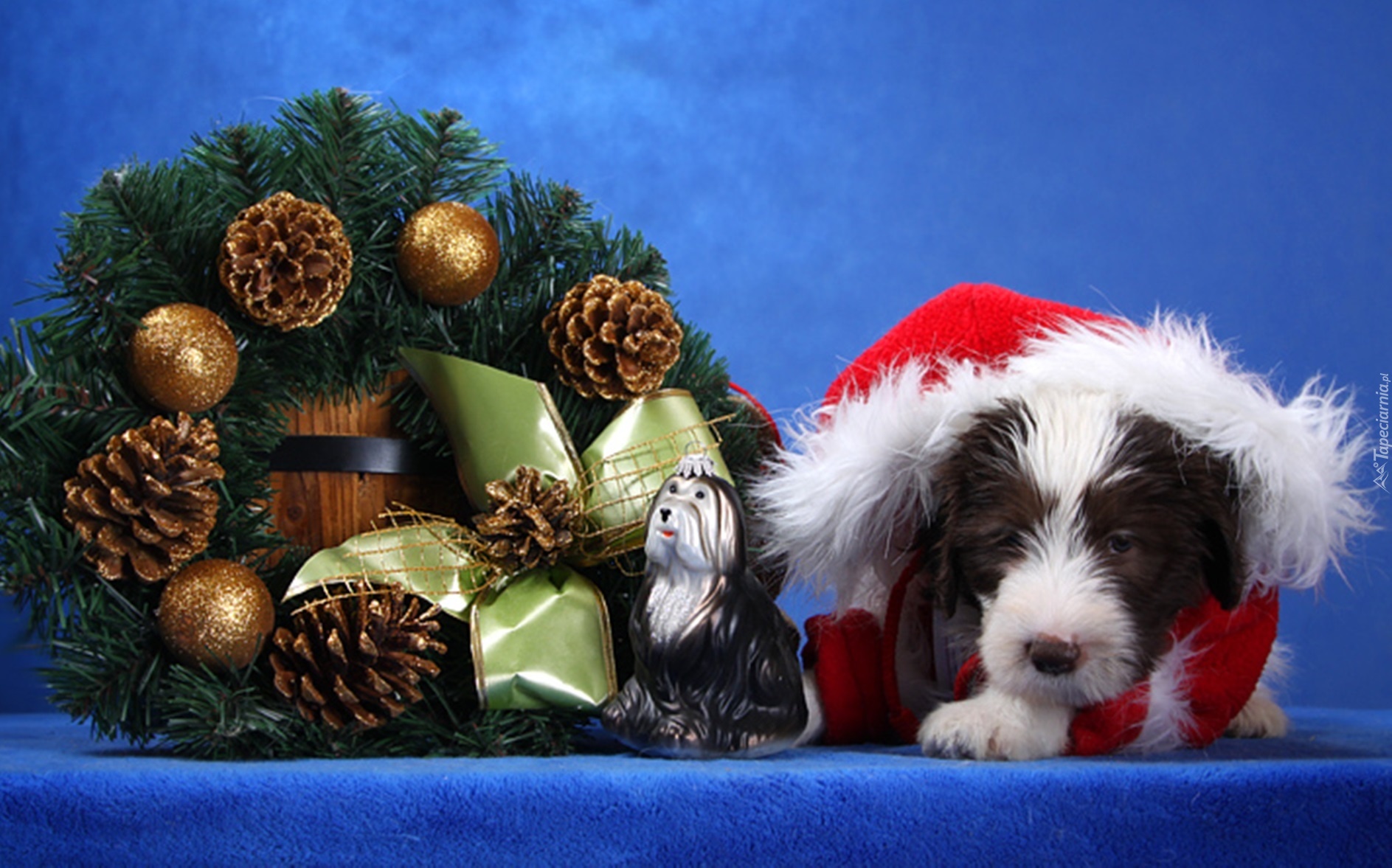 Edytor tapety: Pies, Szczeniak, Czapka, Święta