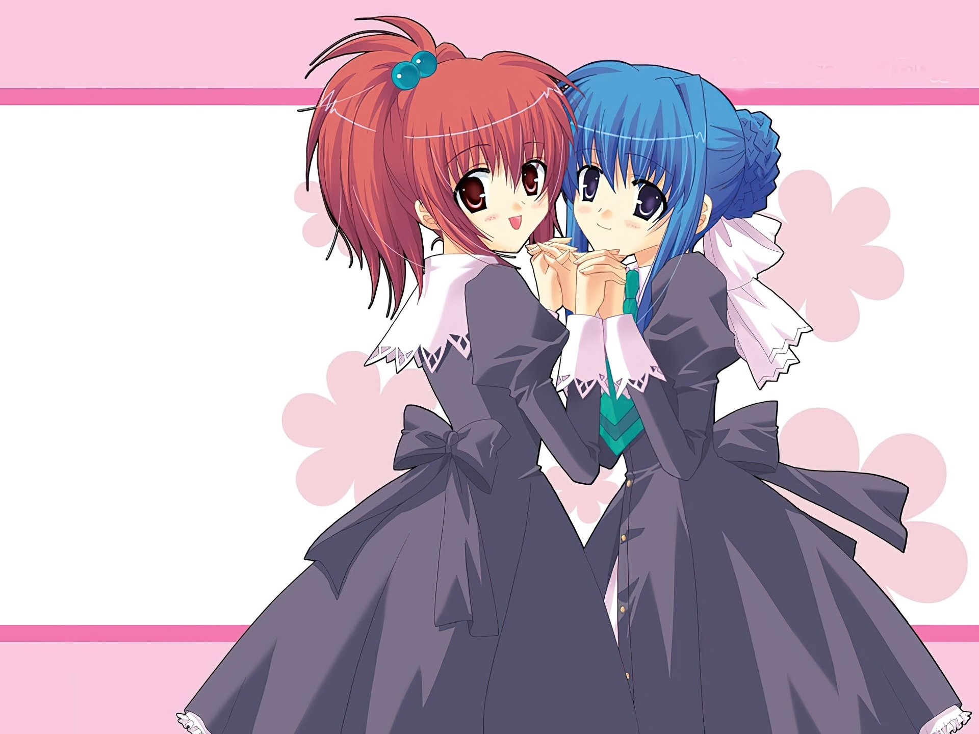 Edytor tapety: Strawberry Panic, grafitowe suknie, kolorowe włosy
